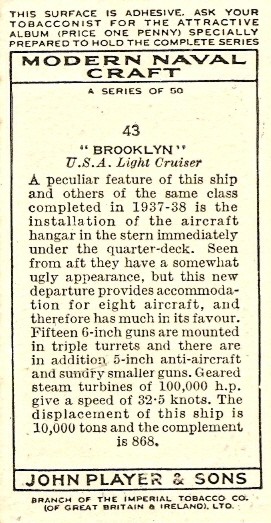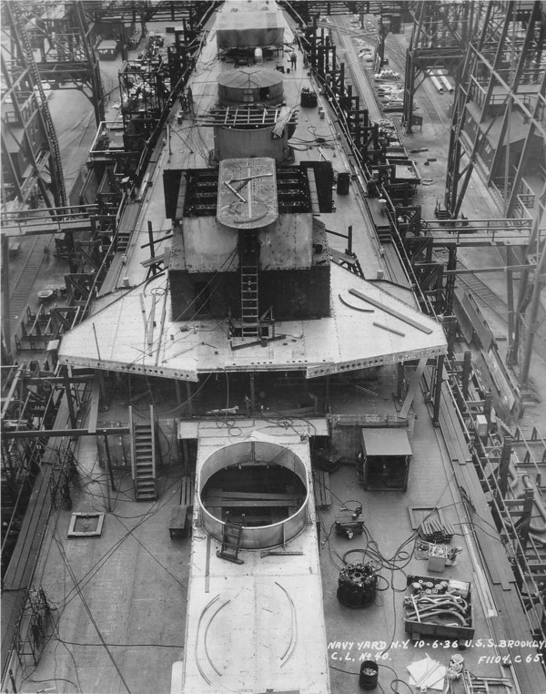 Caption from photo: "Navy Yard N.Y. 10-6-36 U.S.S. Brooklyn C.L. No 40 F1104-C-65." |