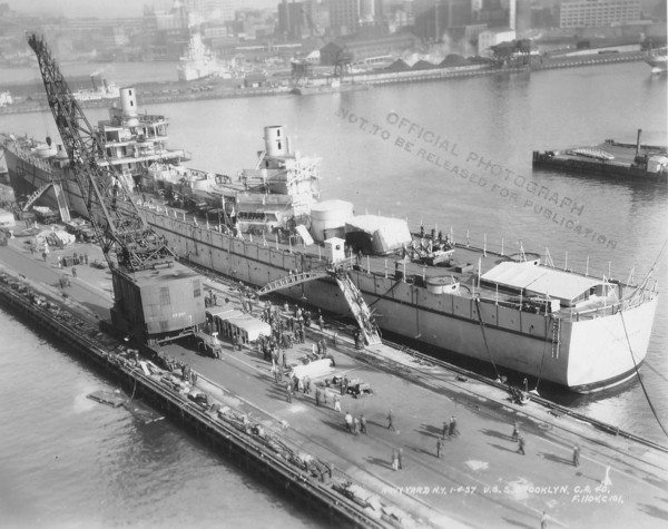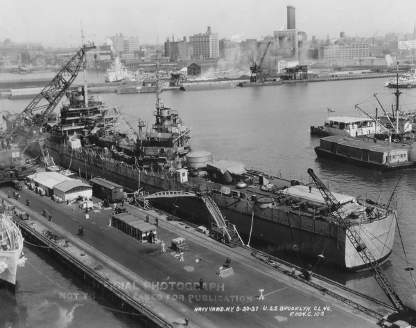 Caption from photo: "Navy Yard N.Y. 3-30-37 U.S.S. Brooklyn C.L. 40, F1104-C-103." |