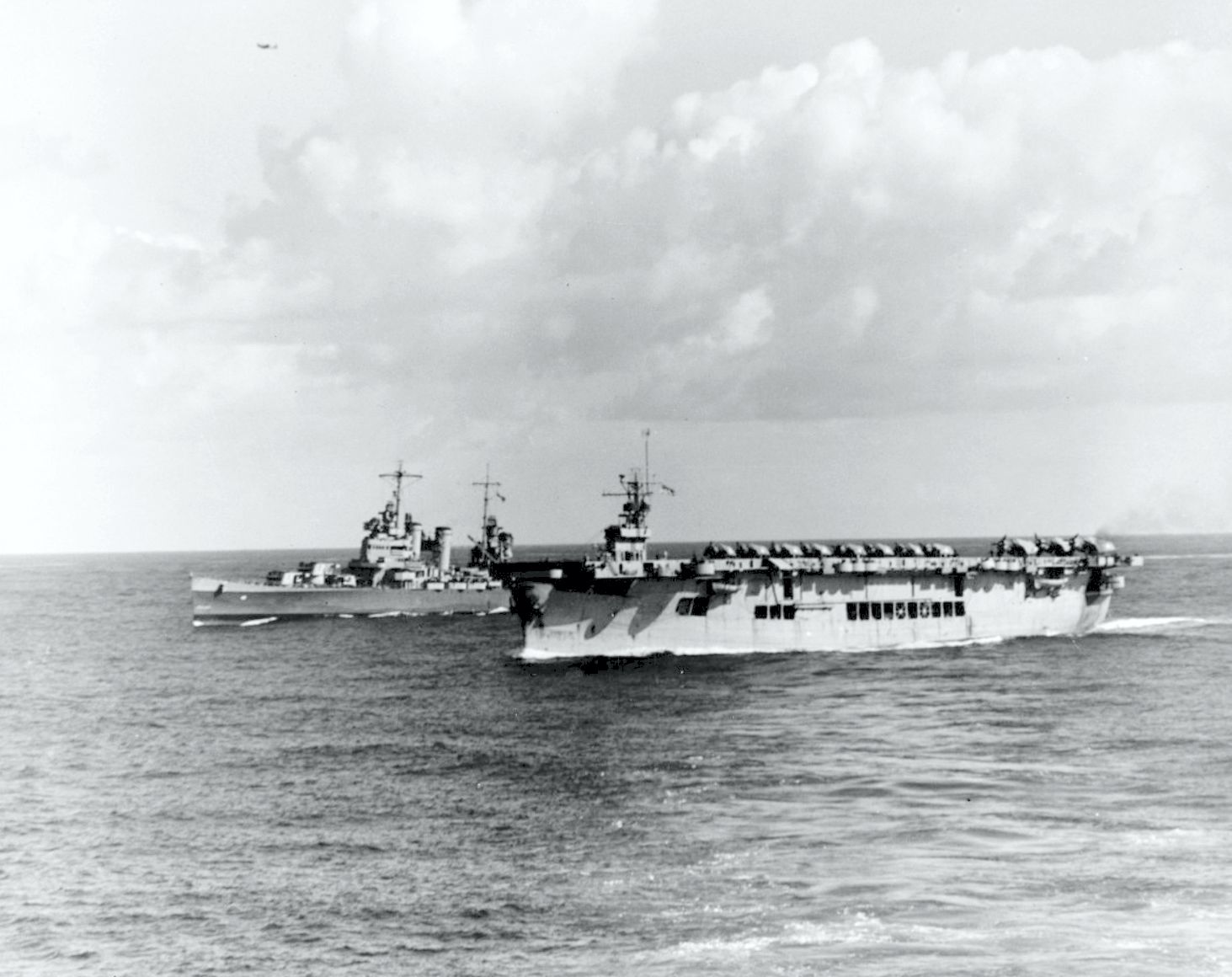 176k | USS Brooklyn (CL 40) and USS Suwannee (ACV 27) underway, with the amphibious convoy, en route to North Africa, early November 1942. United States National Archives, Photo #80-G-30228 |