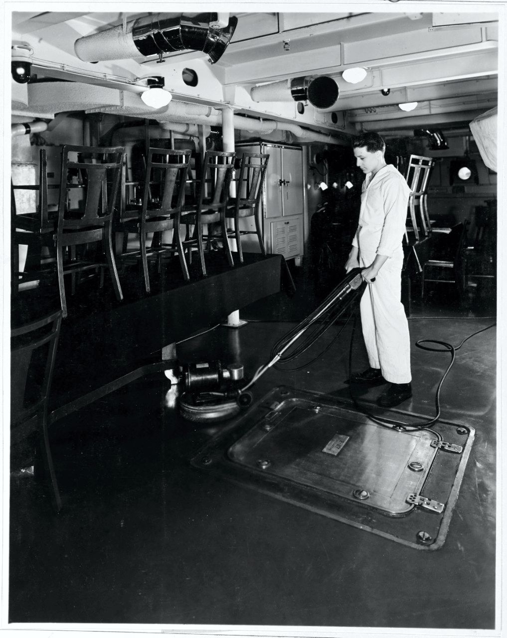 201k | Cleaning the wardroom, 18 January 1938. NHHC Photo #NH 56621 |
