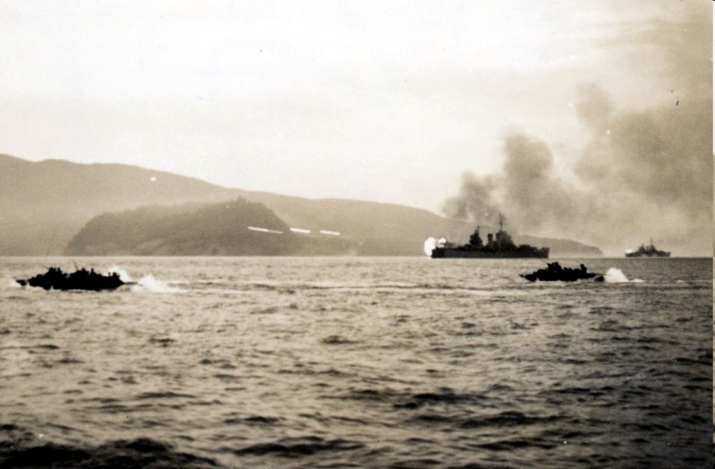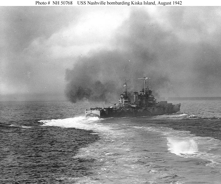 184k | 8 August 1942 photo showing the Nashville bombarding Kiska, Alaska. | USN |