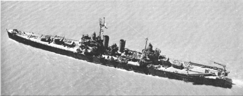 116k | USS Nashville as seen from USS Russell at San Pedro, Leyte anchorage, 15 December 1944. Photo by Ltjg Ed Klump. |
