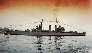 23k | Prat (ex-USS Nashville) at anchor circa 1953 | Robert Hurst |