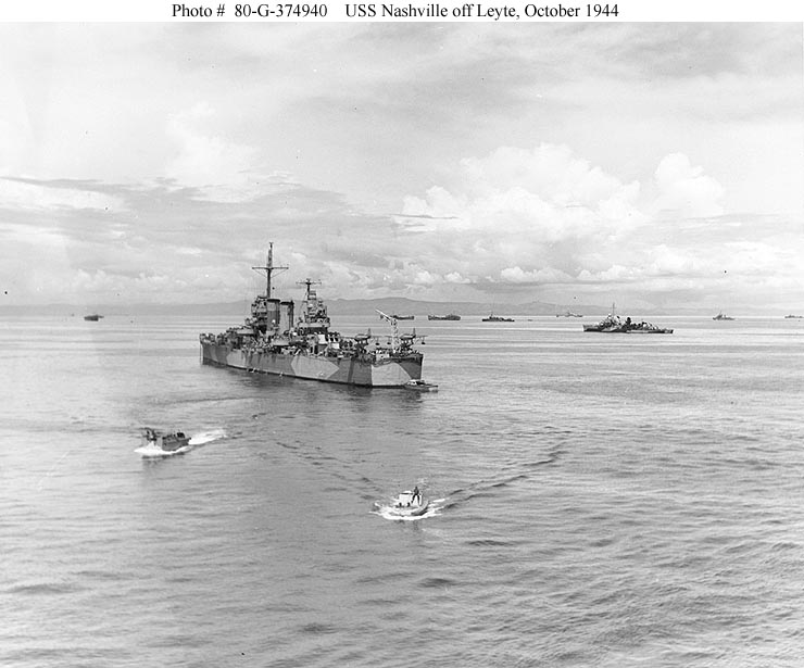 USS Nashville (CL 43) for the Leyte invasion to liberate the Philippine