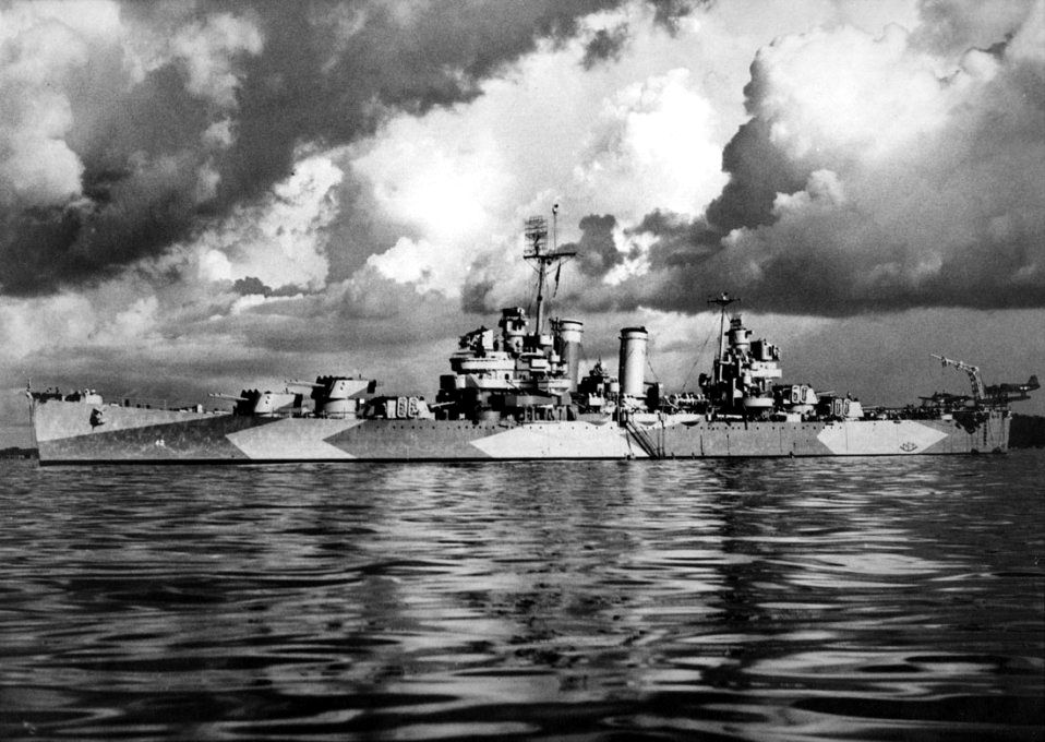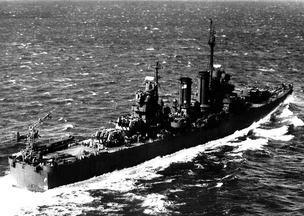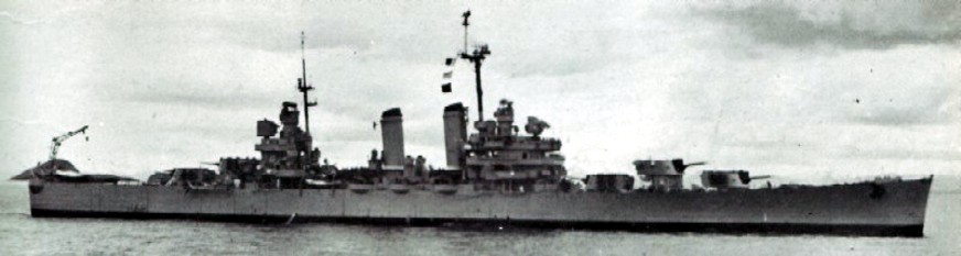 Sound, 1945. Note the SC-1 on the fantail, and the single catapult, typical of late-war cruiser modifications. |