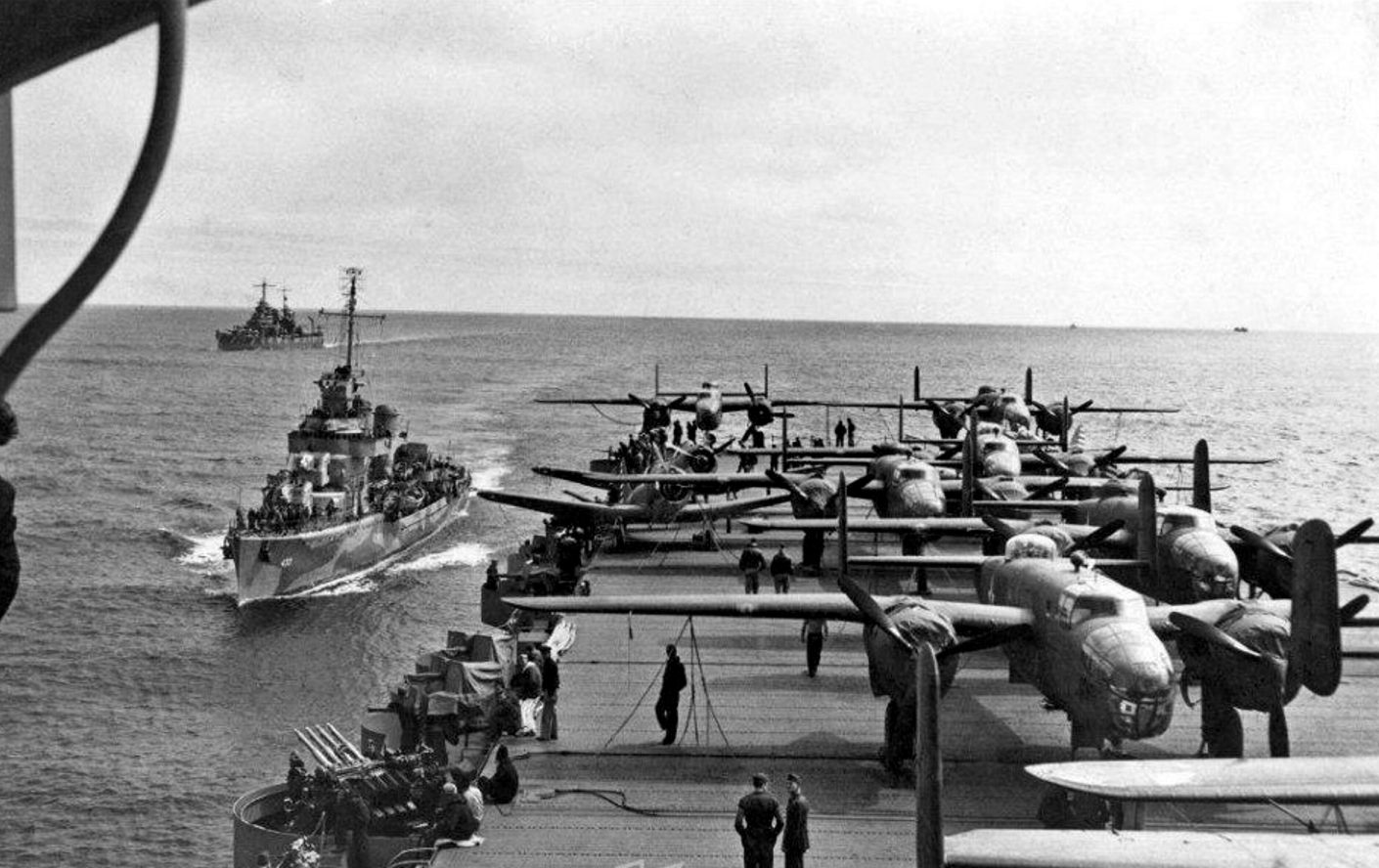 Hornet (CV 8) (looking aft) while part of the "Doolittle"