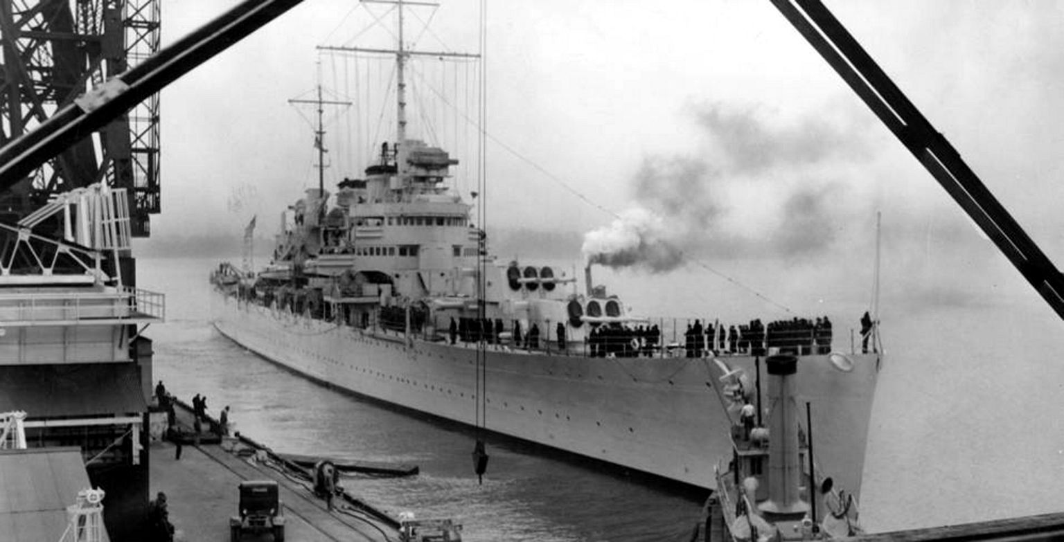 136k | USS Nashville being guided to a berth at the Philadelphia Navy Yard on 5 October 1938 for a post-shakedown availability. Temple Digital Archives, used for educational and non-commercial purpose. |
