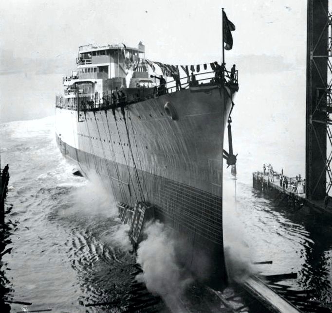 94k | USS Nashville (CL 43) being launched at the New York Shipbuilding Corp., Camden, NJ on 2 October 1937. "The bottles broke, the crowd cheered and the band played, but the ship didn't budge - until several minutes later." Philadelphia Evening Bulletin, George D. McDowell Collection |