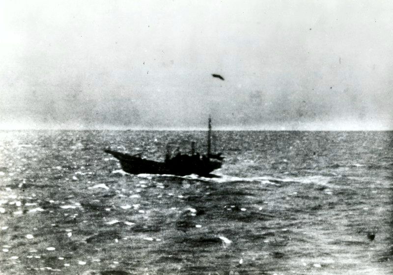 102k | At 07:38 on the morning of 18 April 1942, while Task Force 18 was still about 650 nautical miles (1,200 km; 750 mi) from Japan (around 35°N 154°E), it was sighted by the Japanese picket boat No. 23 Nitto Maru, a 70-ton patrol craft, which radioed an attack warning to Japan. The boat was sunk by gunfire from USS Nashville. The chief petty officer who captained the boat killed himself rather than be captured, but five of the 11 crew were picked up by Nashville. The order to Nashville did not go out until 07:52. Heavy seas made hitting the picket boat difficult even with rapid fire, and it was not sunk until 08:23. | Yu Chu |