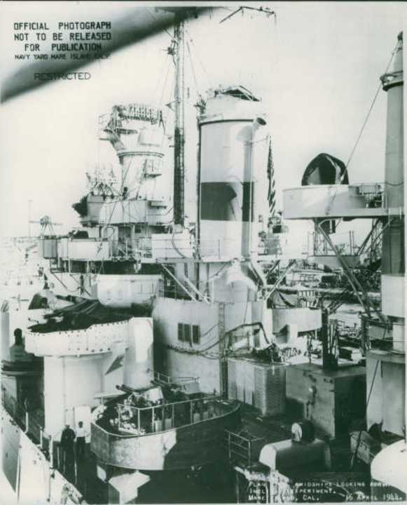 Plan view midships looking aft during Inclining at Mare Island, CA on 15 April 1944. U.S. Navy Photo #2347-44 |