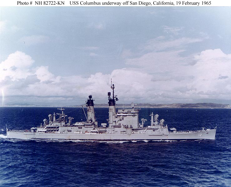 USS Columbus (CG 12) Steaming off San Diego, California, 19 February 1965. Official U.S. Navy Photograph, from the collections of the Naval Historical Center #NH 82722-KN. |