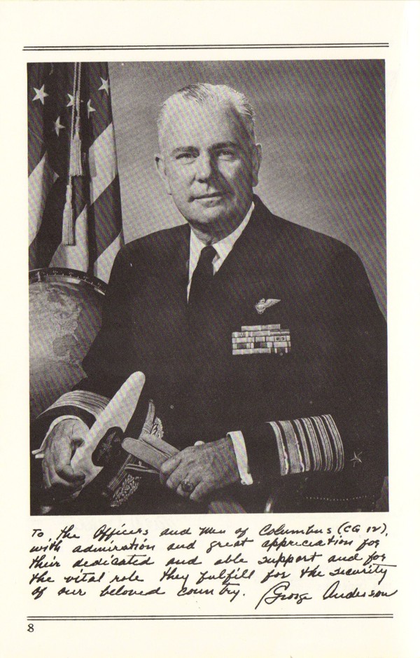USS Columbus (CA 74) Off the Puget Sound Naval Shipyard, Bremerton, Washington, 14 March 1959. The original print has been signed by Admiral Arleigh A. Burke, who served in this ship while he was Commander, Cruiser Division Six from March 1954 to January 1955. Official U.S. Navy Photograph, from the collections of the Naval Historical Center #NH 98458. |