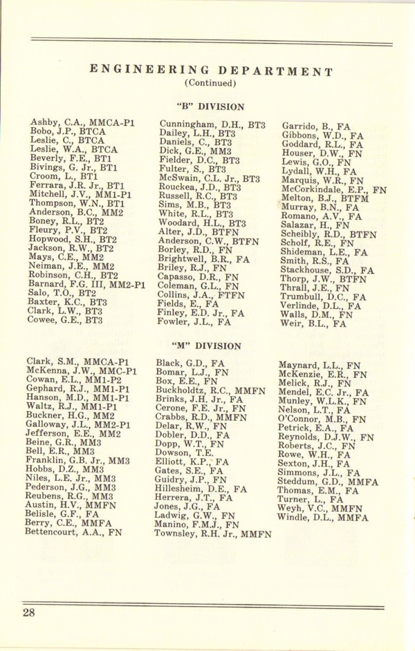 | Van Mater, Blinn, CAPT | 1927 | RADM | 01/28/1954 - 11/18/1954 |