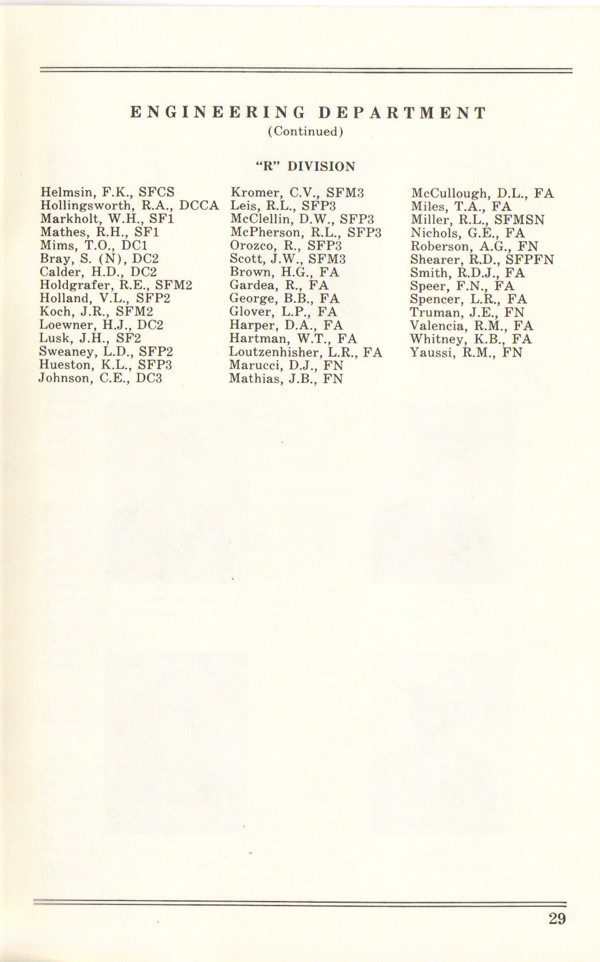 | Robeson Jr., Robert Holmes, CAPT | 1946 | 08/14/1970 - 08/03/1971 | |