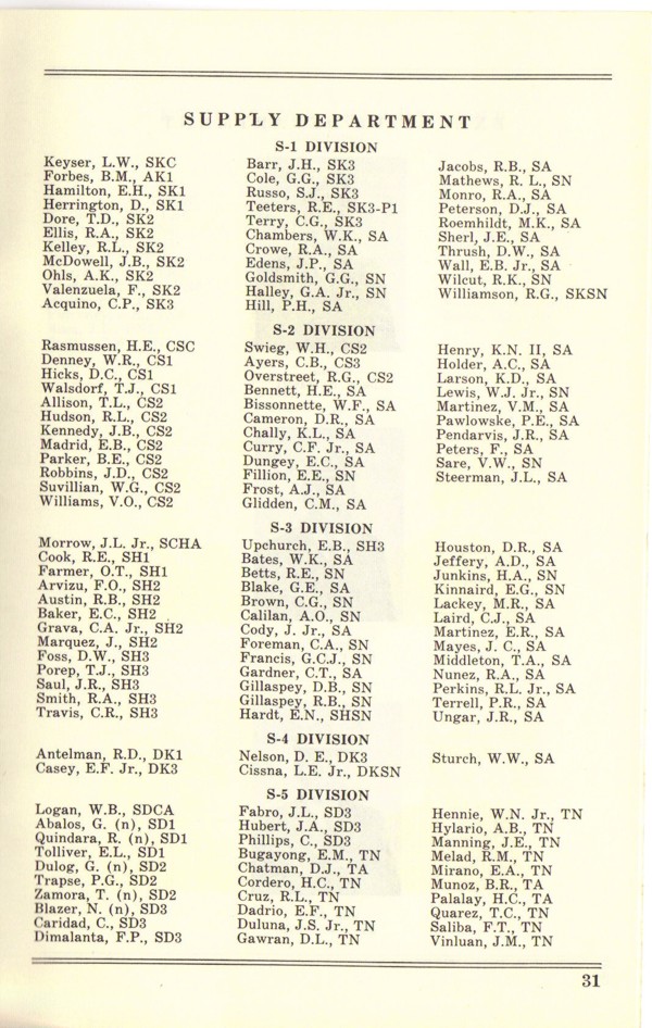 Commissioning Program for the USS Columbus (CG 12) that was held at the Puget Sound Naval Shipyard on 1 December 1962. Page 31. |