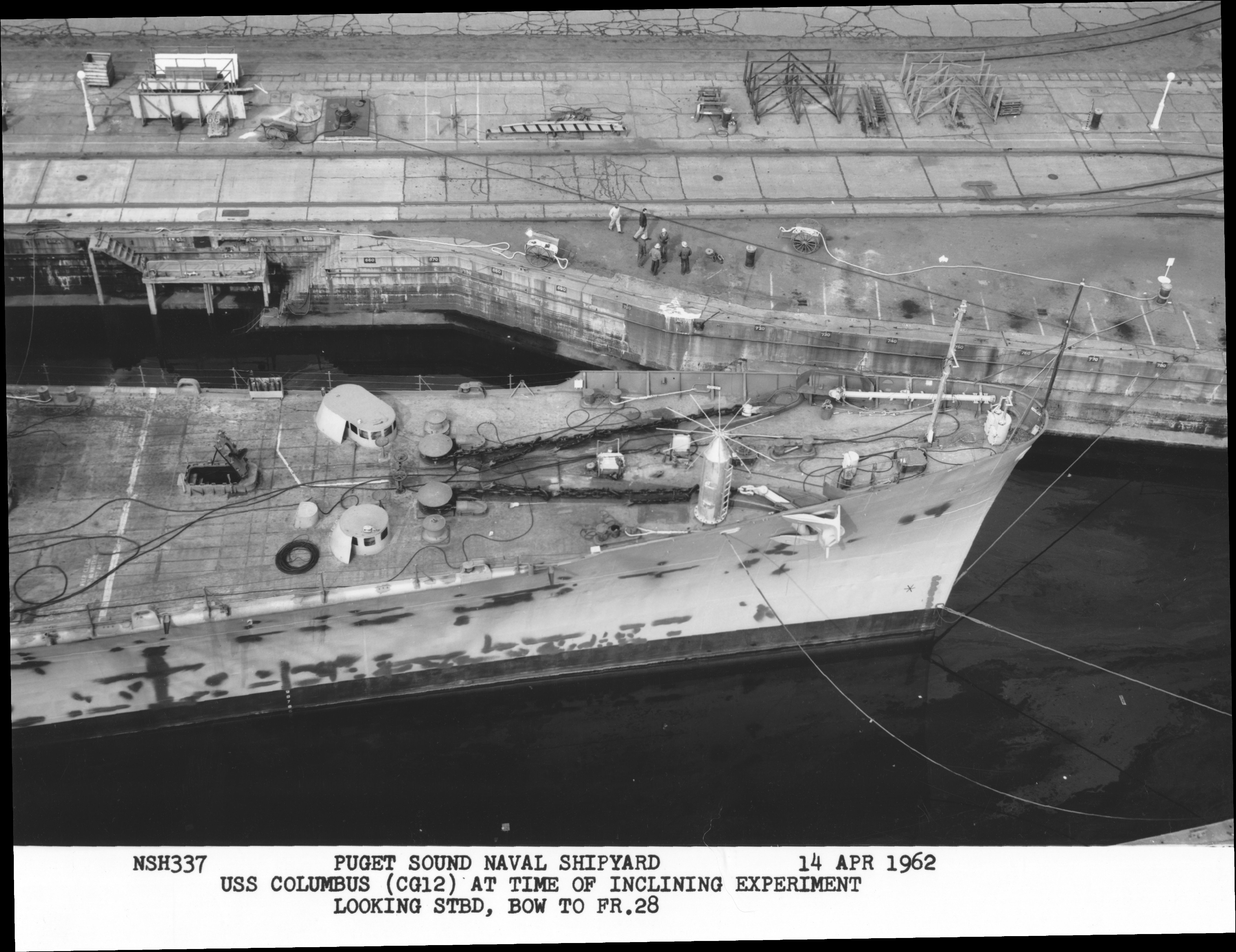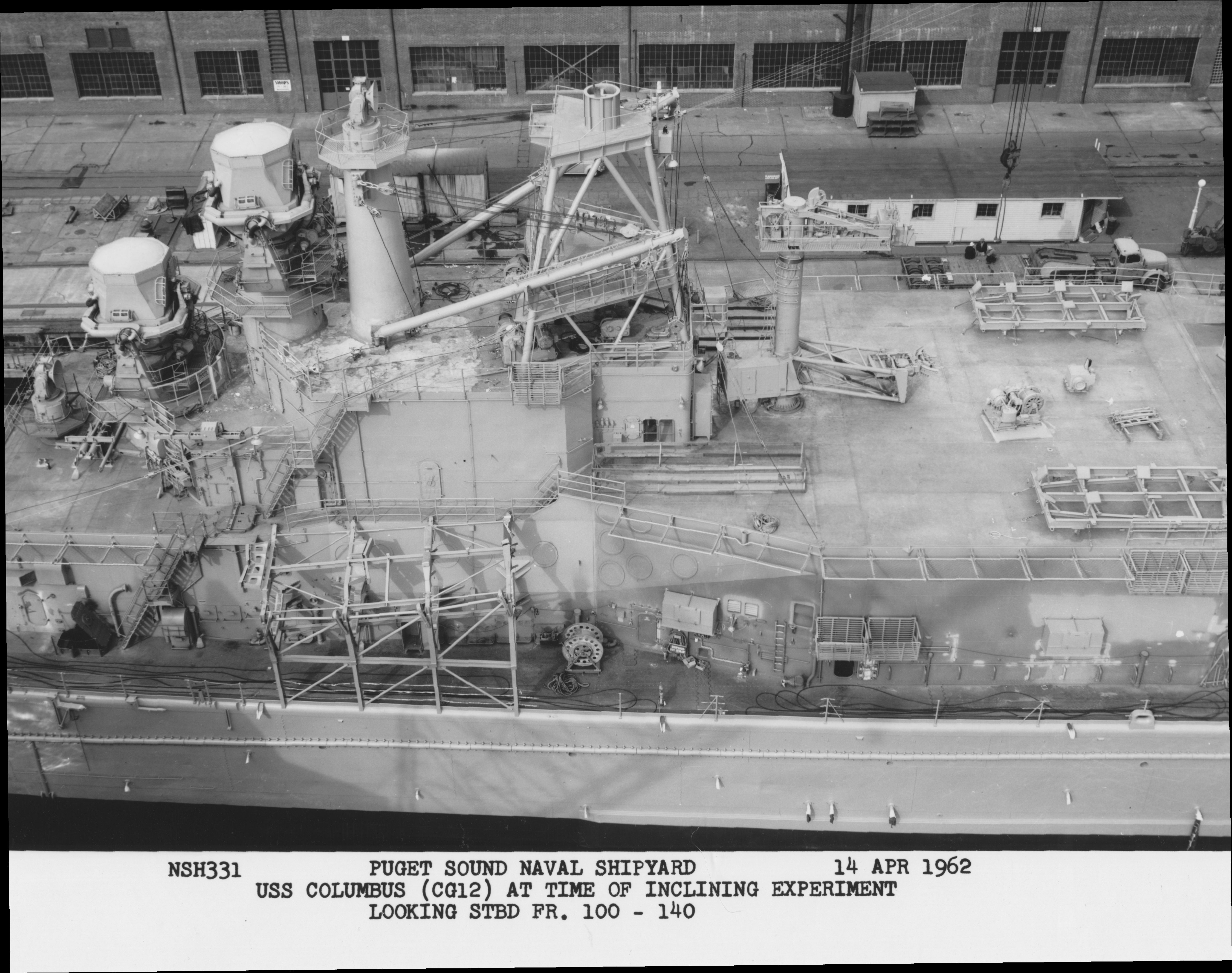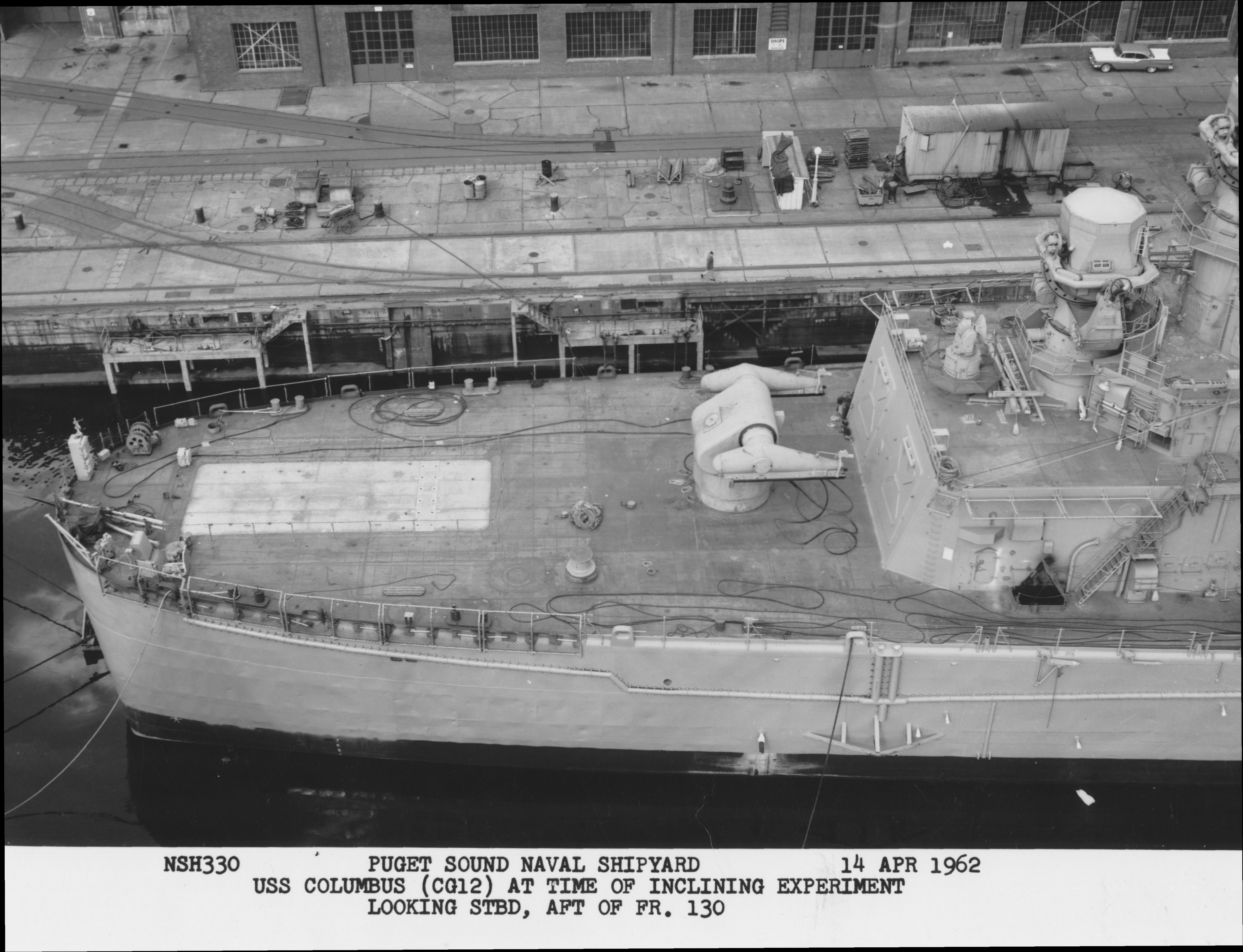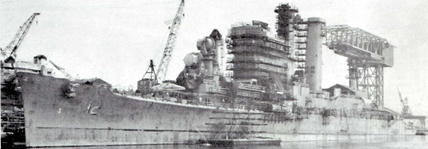 60k | USS Columbus while under conversion to a missile cruiser, circa 1961. Note her new CG number painted on her hull. Photo courtesy of Puget Sound Naval Shipyard. | Robert Hurst | |