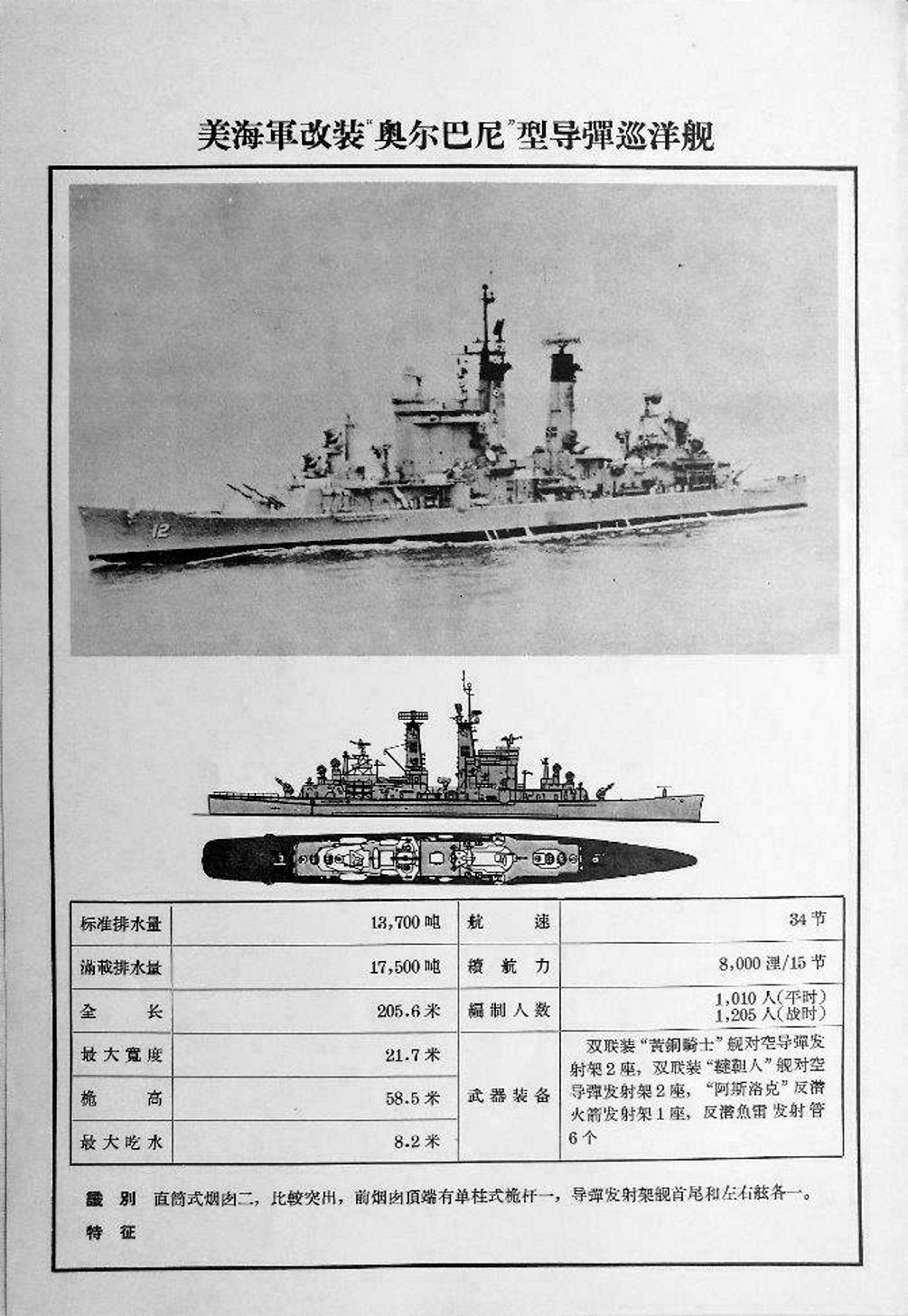 95k | Undated, 1963+, Showing differences from the original Baltimore conversions. This was double ended and all conventional guns were removed with the exception of 2 5"/38AA's and thus they became "True Missile Cruisers". | USN | |