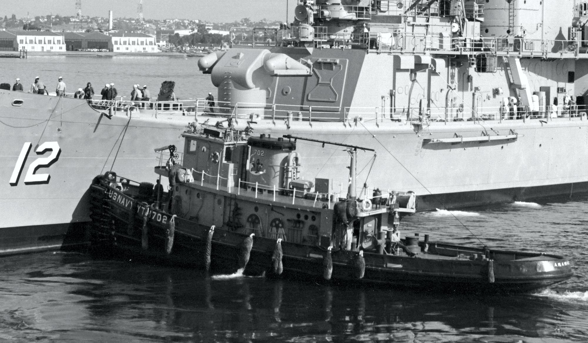 405k | USS Arawak (YTM 702) assisting Columbus sometime after February 1962 (when Arawak's designation was changed to YTM) in San Diego, CA. | Yu Chu | |