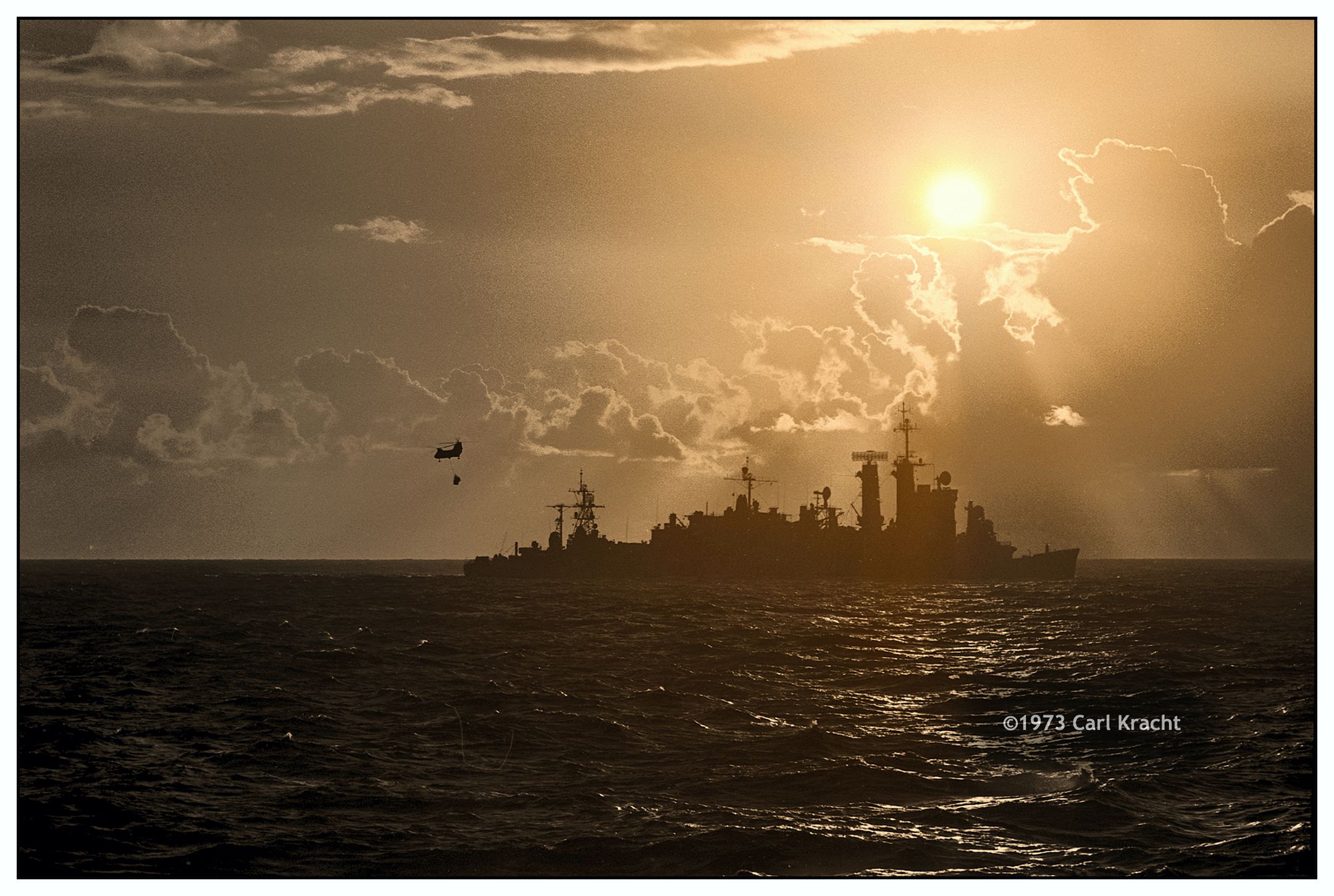At anchor, location unknown, 1973. Shot from the USS Vreeland (DE 1068), | Carl Kracht | ||