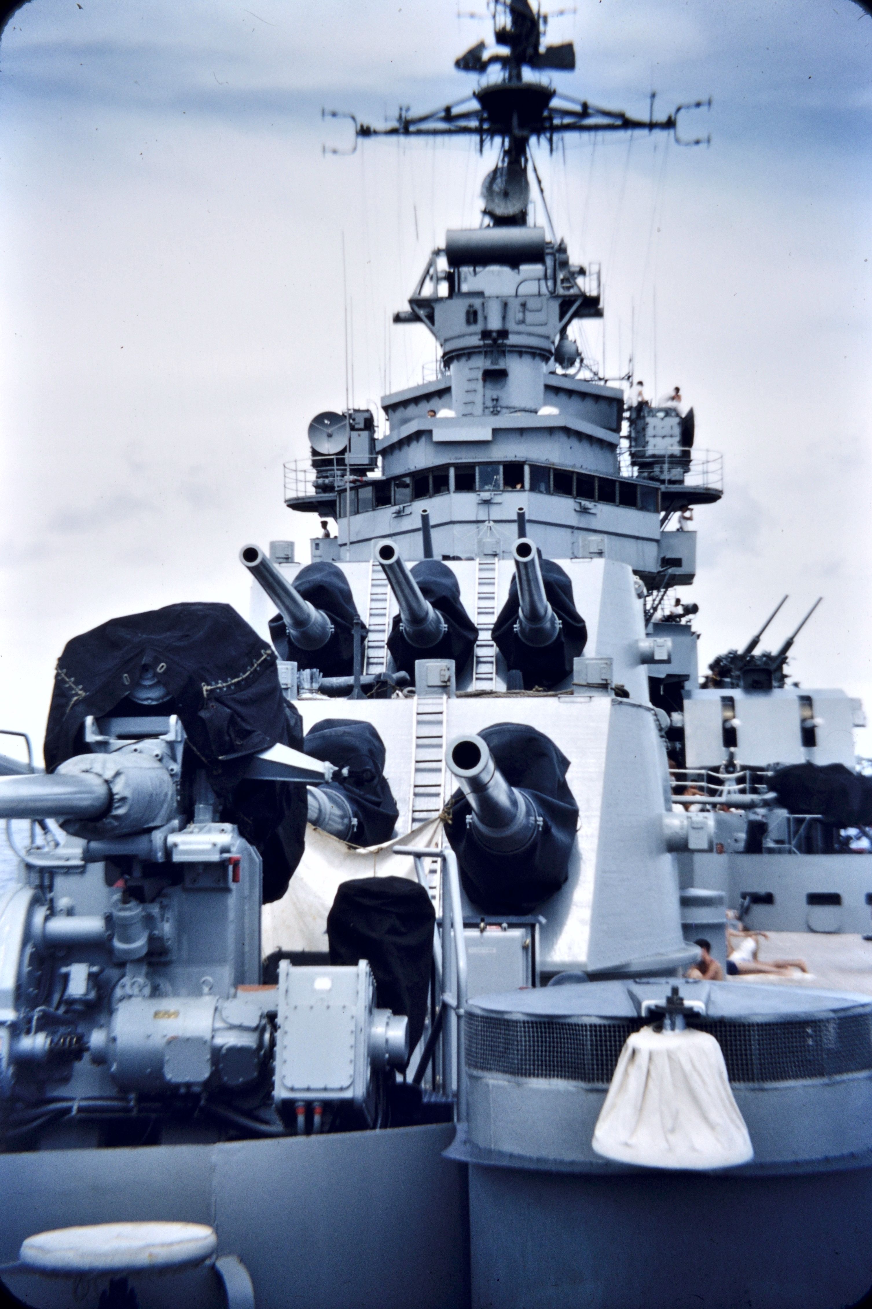 1.4m | View of the forward main battery turrets of Columbus around the time of equator crossing, circa 1955 or 1956. From the collection of Domenic S. Terranova, USS Columbus Fire Control Officer. | Domenic F. Terranova | |