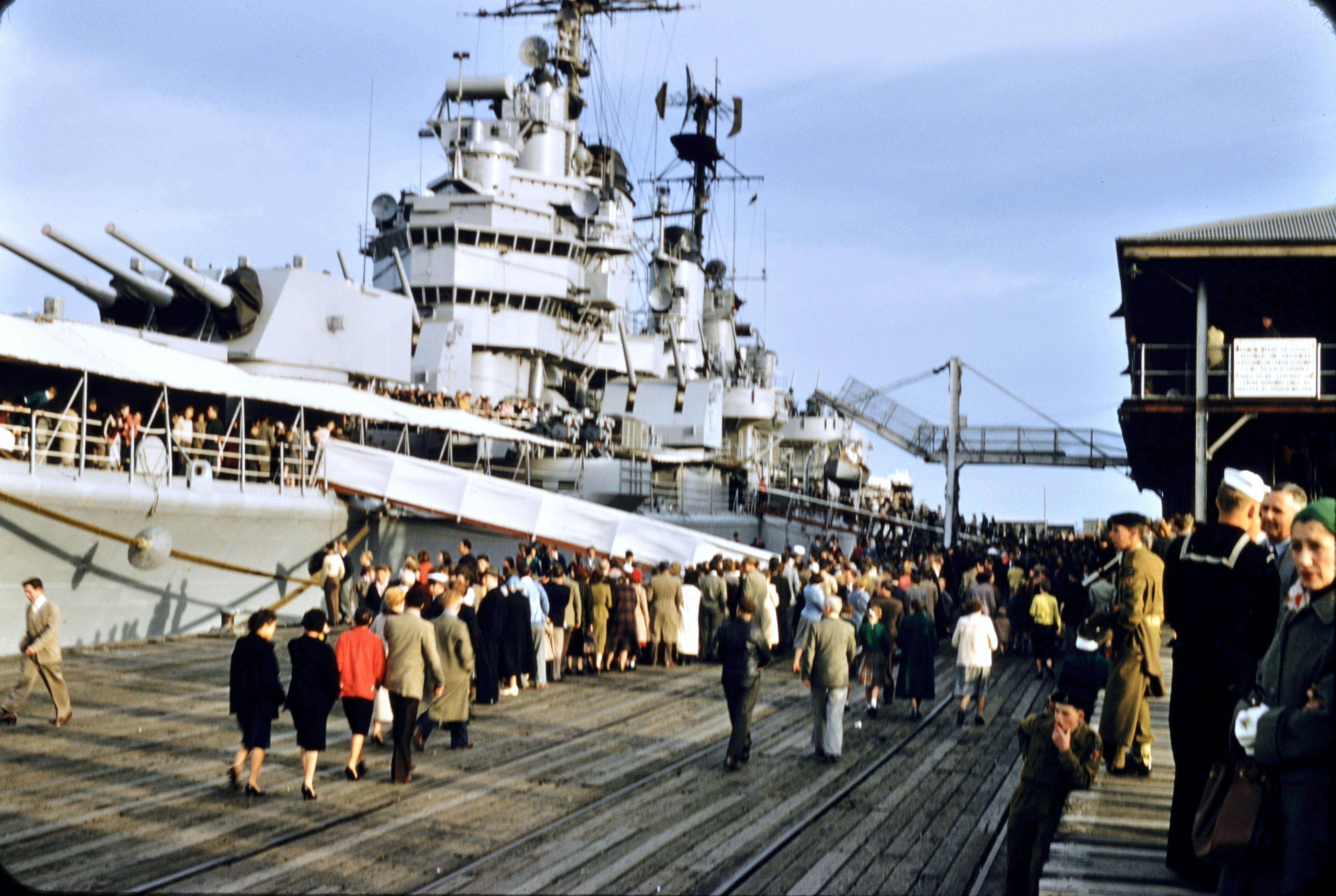 1.6m | USS Columbus tied up at pier in either Fiji or Hawaii circa 1956. From the collection of Domenic S. Terranova, USS Columbus Fire Control Officer. | Domenic F. Terranova | |