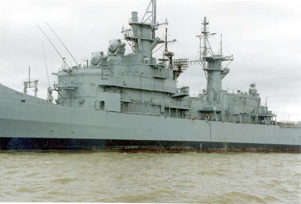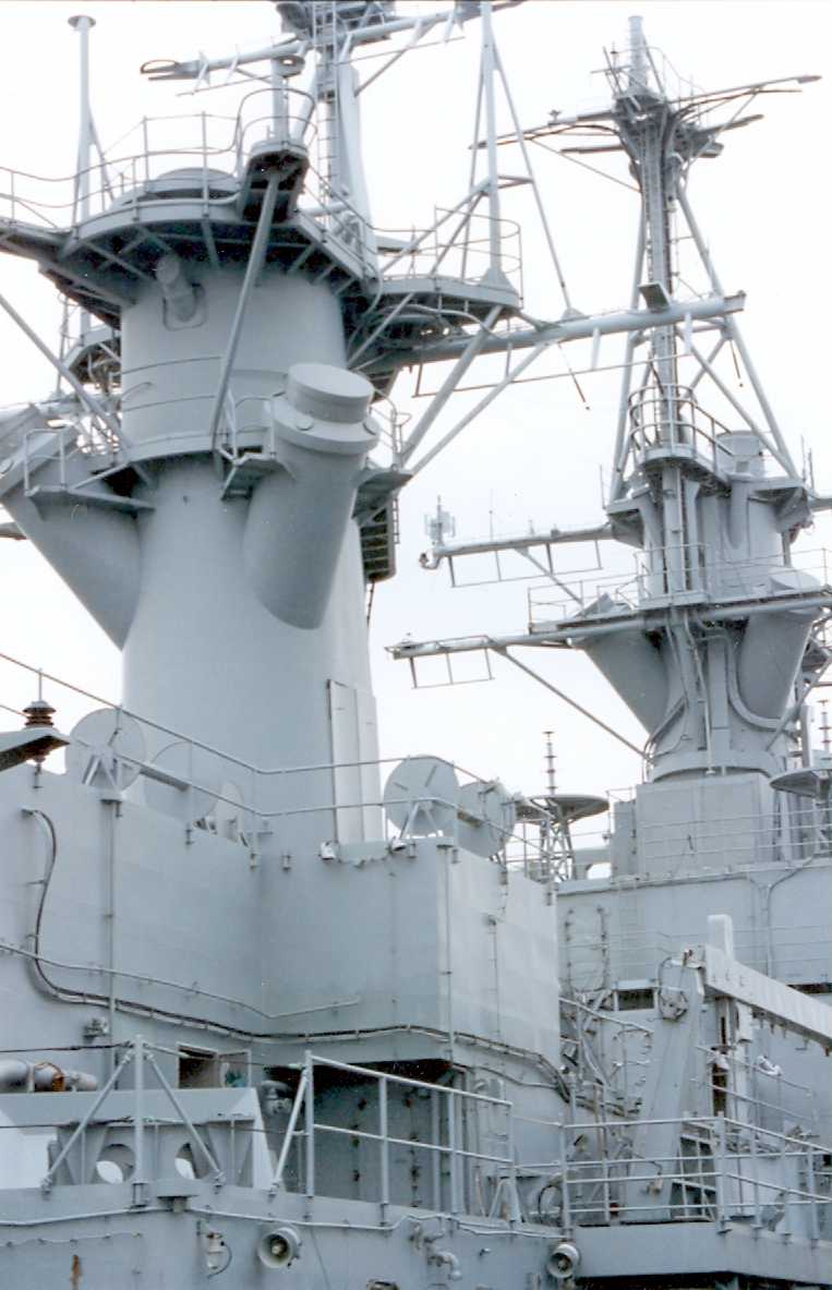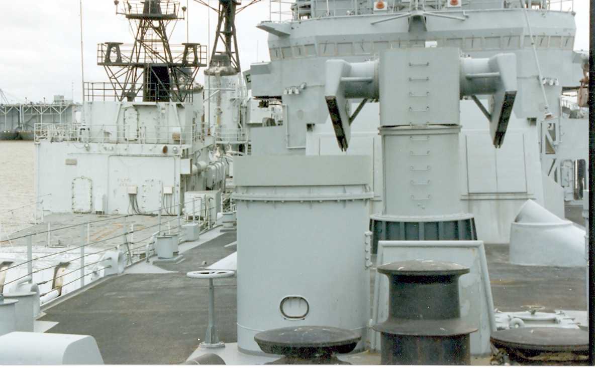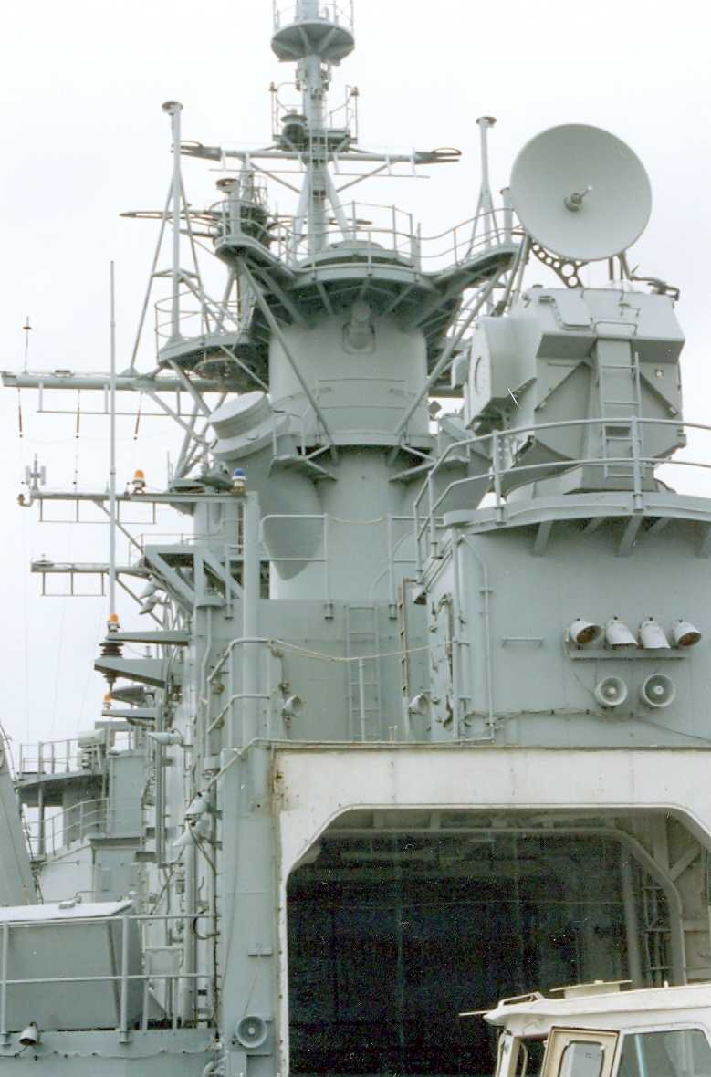 70k | View of after Mack, MK 68 GFCS Director, and Helo Hanger taken on 5 June 1995 at the MARAD reserve fleet at Fort Eustice, Virginia. | Ed Zajkowski | |