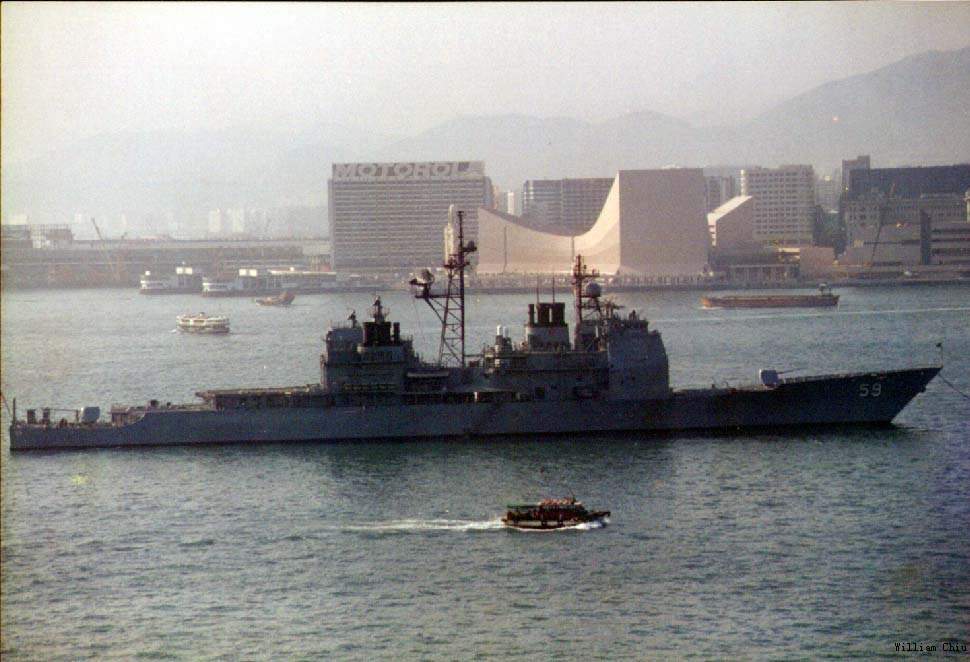 77k | Starboard side view, anchored, Hong Kong harbor, 12 May 1991. | William Chiu | |