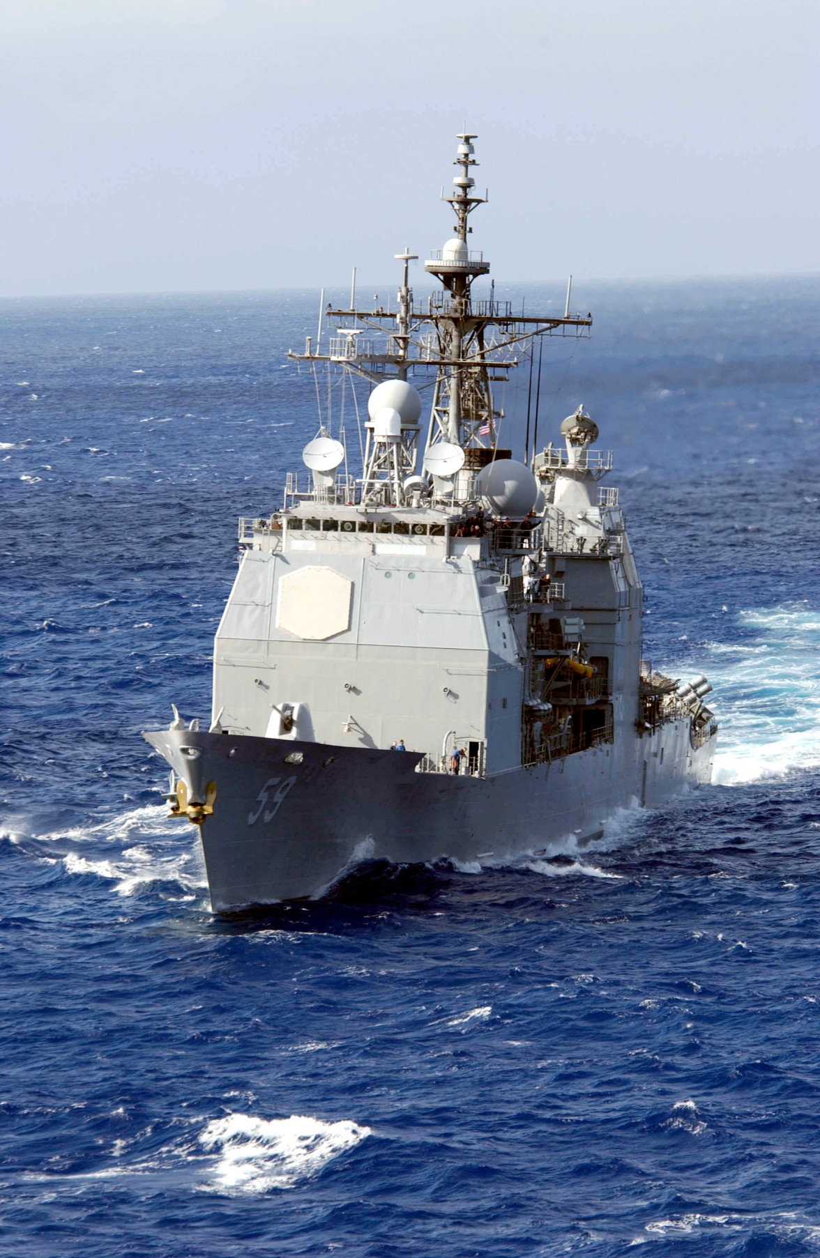At sea, 29 April 2002 - The guided missile cruiser USS Princeton (CG 59) is currently deployed conducting combat missions in support of Operation Iraqi Freedom. Operation Iraqi Freedom is the multi-national coalition effort to liberate the Iraqi people, eliminate Iraq's weapons of mass destruction, and end the regime of Saddam Hussein. U.S. Navy photo #030429-N-4441P-002 by Photographer's Mate 2nd Class Michael J. Pusnik, Jr. |