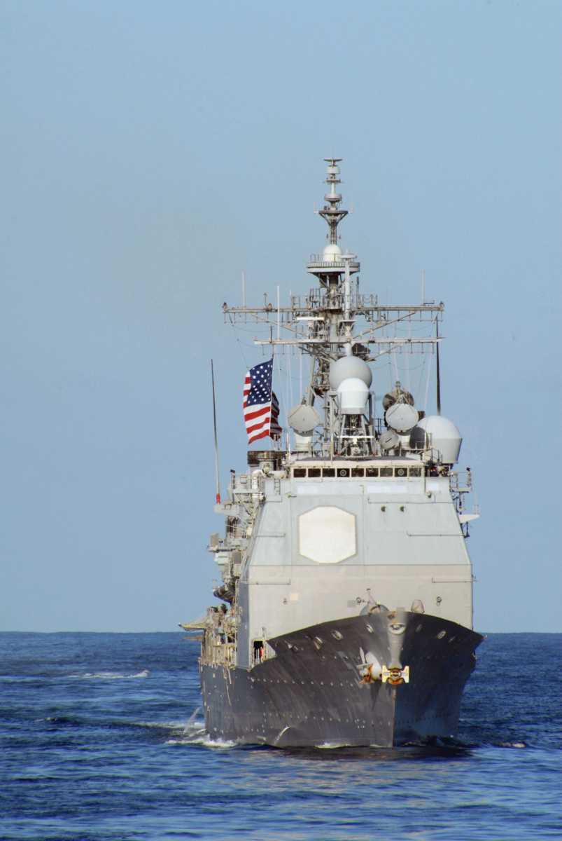 USS Princeton (CG 59) steams to her homeport of San Diego, CA., as part of the Nimitz Carrier Strike Group, which is returning from an eight-month deployment. U.S. Navy photo #031102-N-9411J-005 by Photographer's Mate 2nd Class Christopher Jordan. |