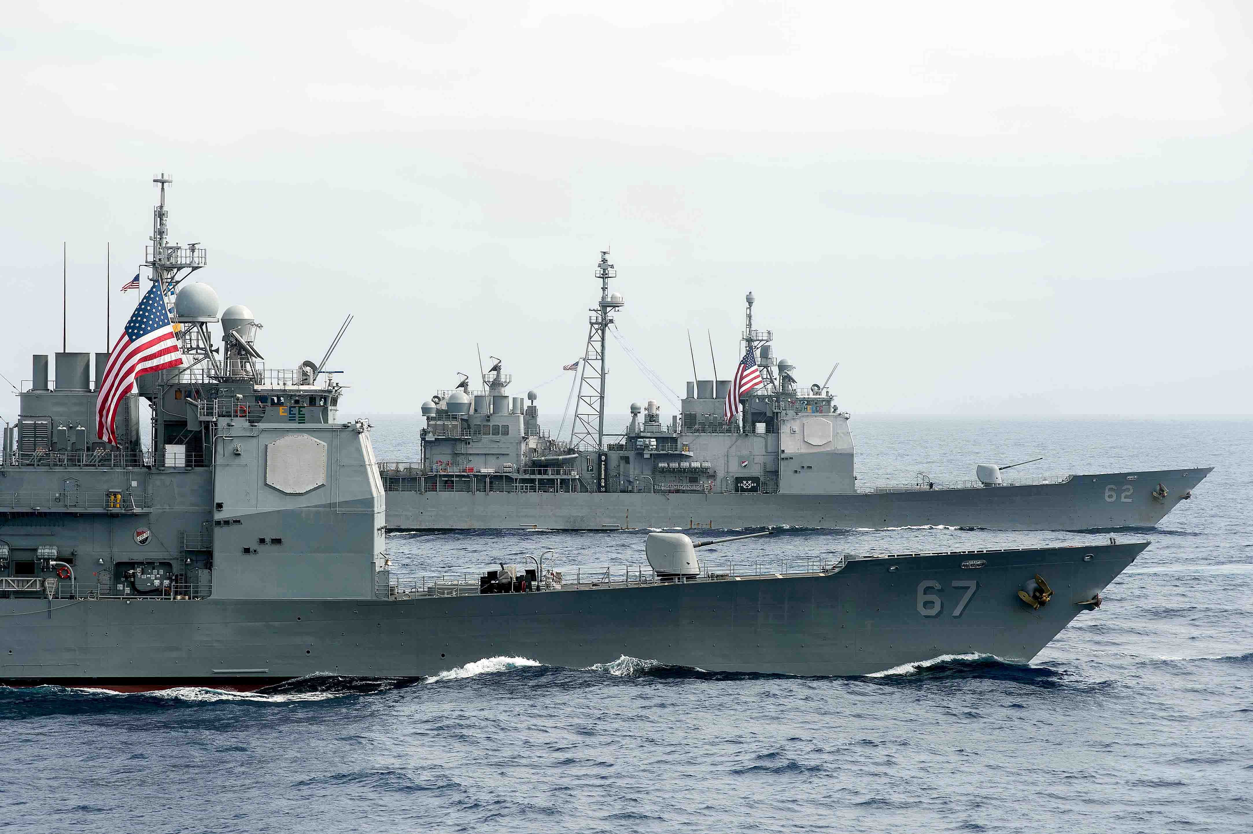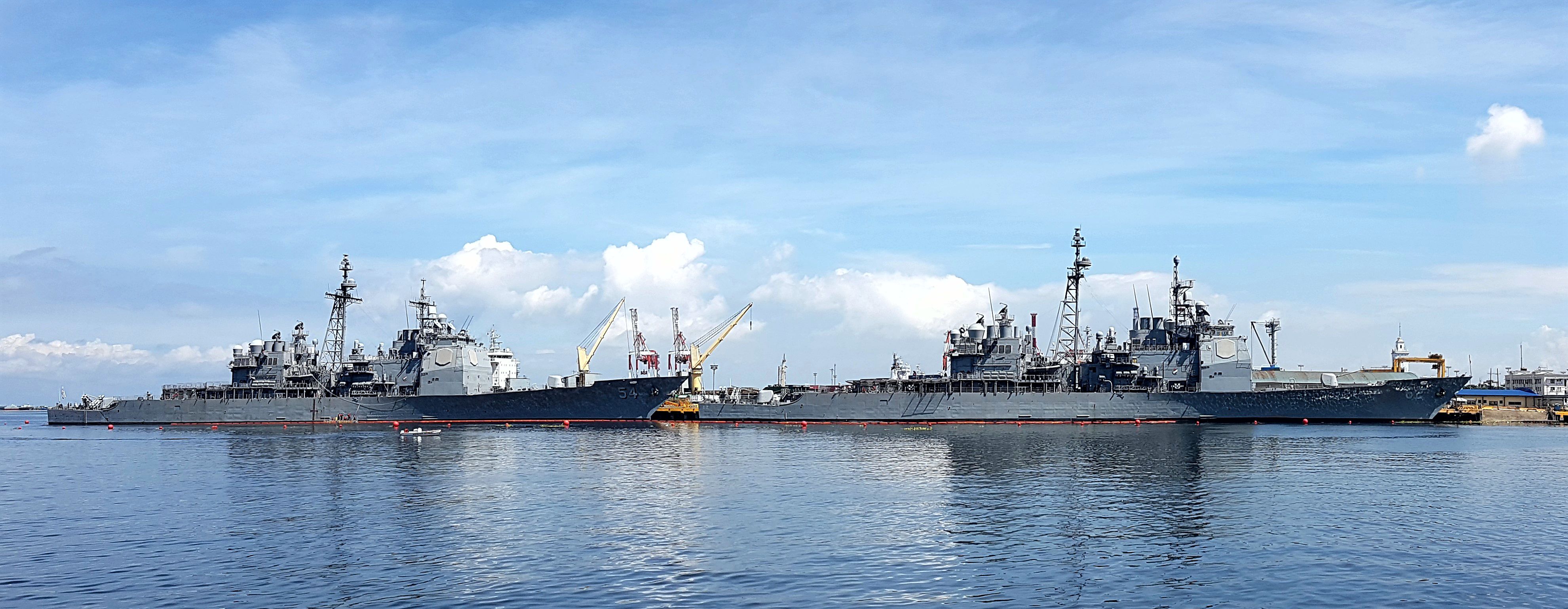 921k | USS Antietam (CG 54) and USS Chancellorsville (CG 62), moored in Manila South Harbor, 28 June 2018. | Edison Sy |