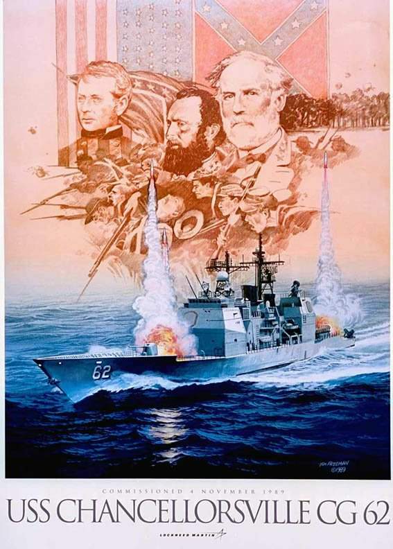 71k | Commissioning Poster for USS Chancellorsville CG-62, 4 November 1989. Created from an original painting by artist Tom Freeman. | Robert M. Cieri |