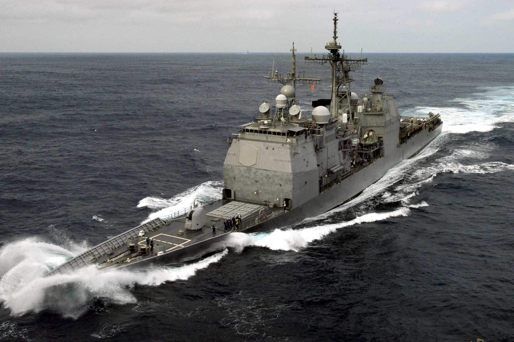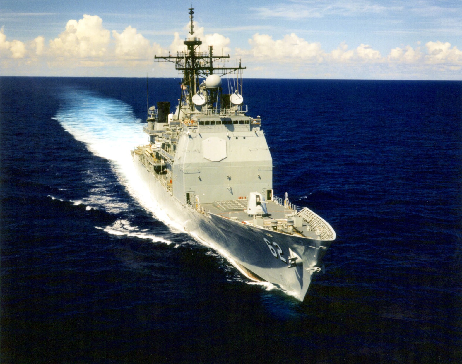 434k | A starboard bow view of the guided missile cruiser USS Chancellorsville (CG 62) underway en route to the Panama Canal. Official U.S. Navy Photo taken by PH2 Dante DeAnqelis. |