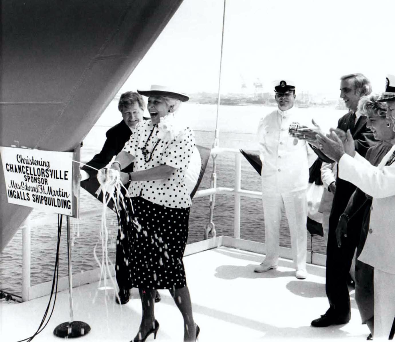 163 k | Christening of the Chancellorsville (CG 62) by Mrs. Sharron M. Martin, wife of Vice Admiral Edward H. Martin | Dale Hargrave |