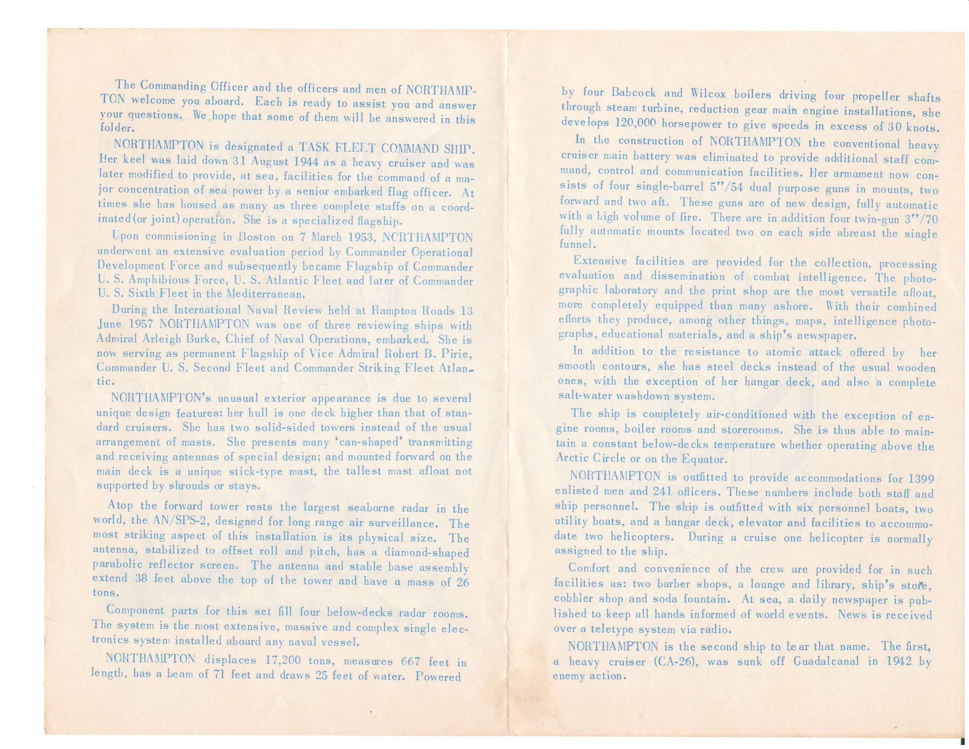 70k | USS Northampton (CC 1) underway at sea, 26 June 1962. Photographed by Crandall. Note that the 3"/50RF turrets have been replaced with the 3"/70RF Naval History and Heritage Command, Photo #NH 106503. |