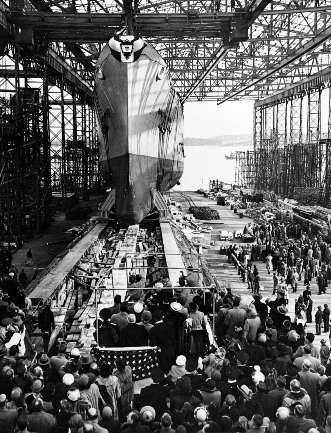 411k | USS Northampton (CLC 1) launching at Quincy, Massachusetts on 27 January 1951 Naval History and Heritage Command, Photo #NH 73324. |