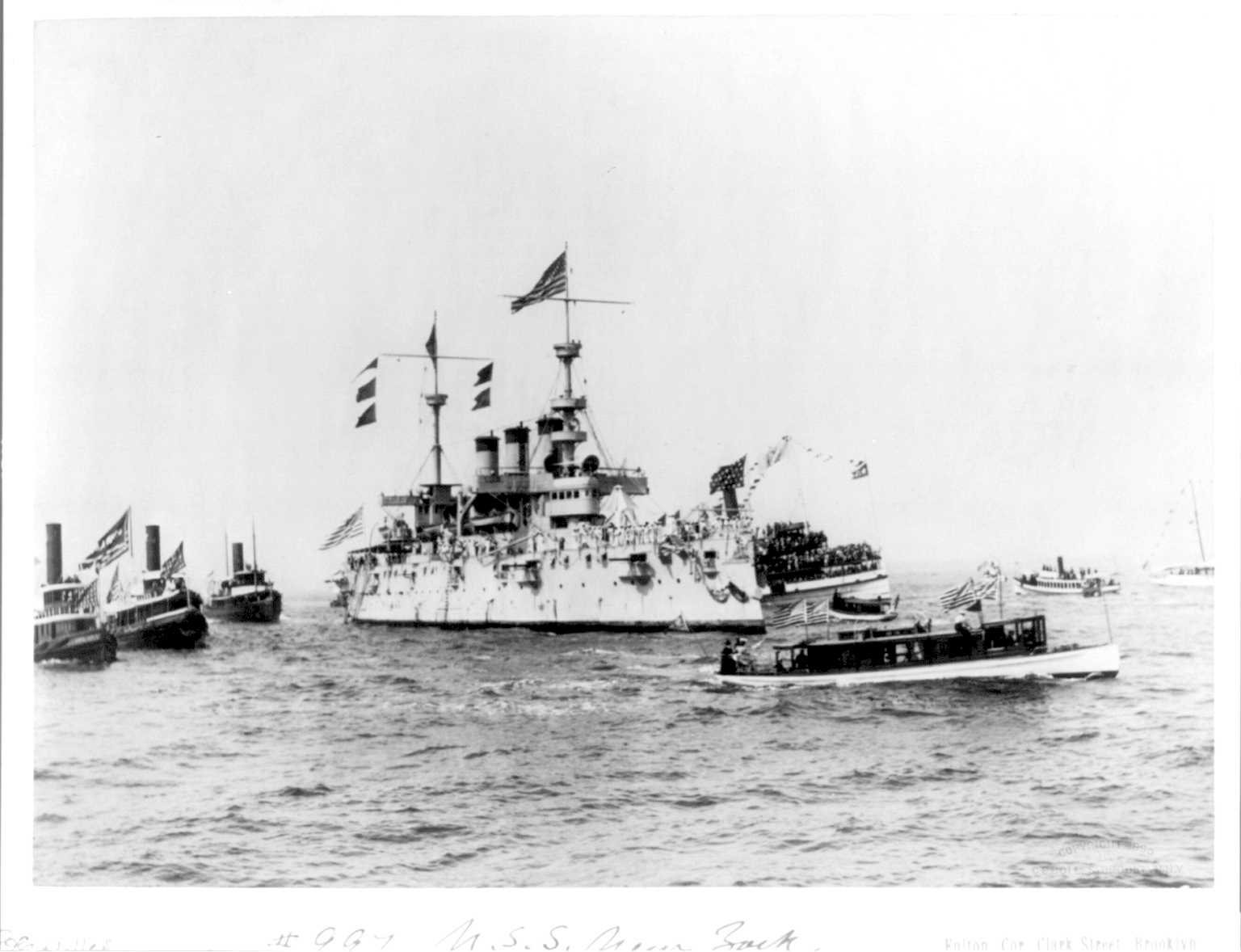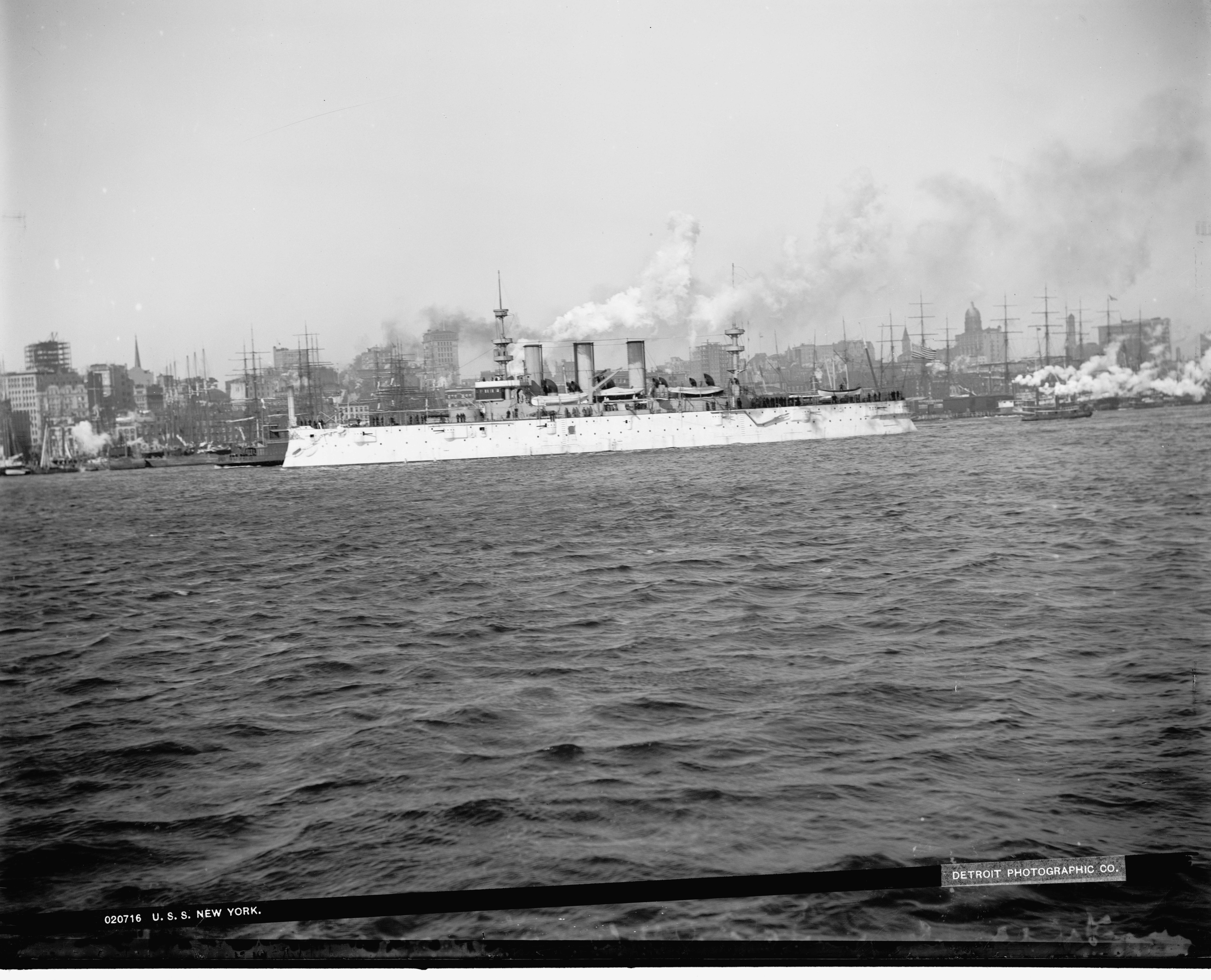 2.92k | New York (ACR-2) in like namesake city, circa 1893-1901. | Photographer Edward H. Hart, courtesy of the Detroit Publishing Company, Digital Id det 4a14499 loc.gov |