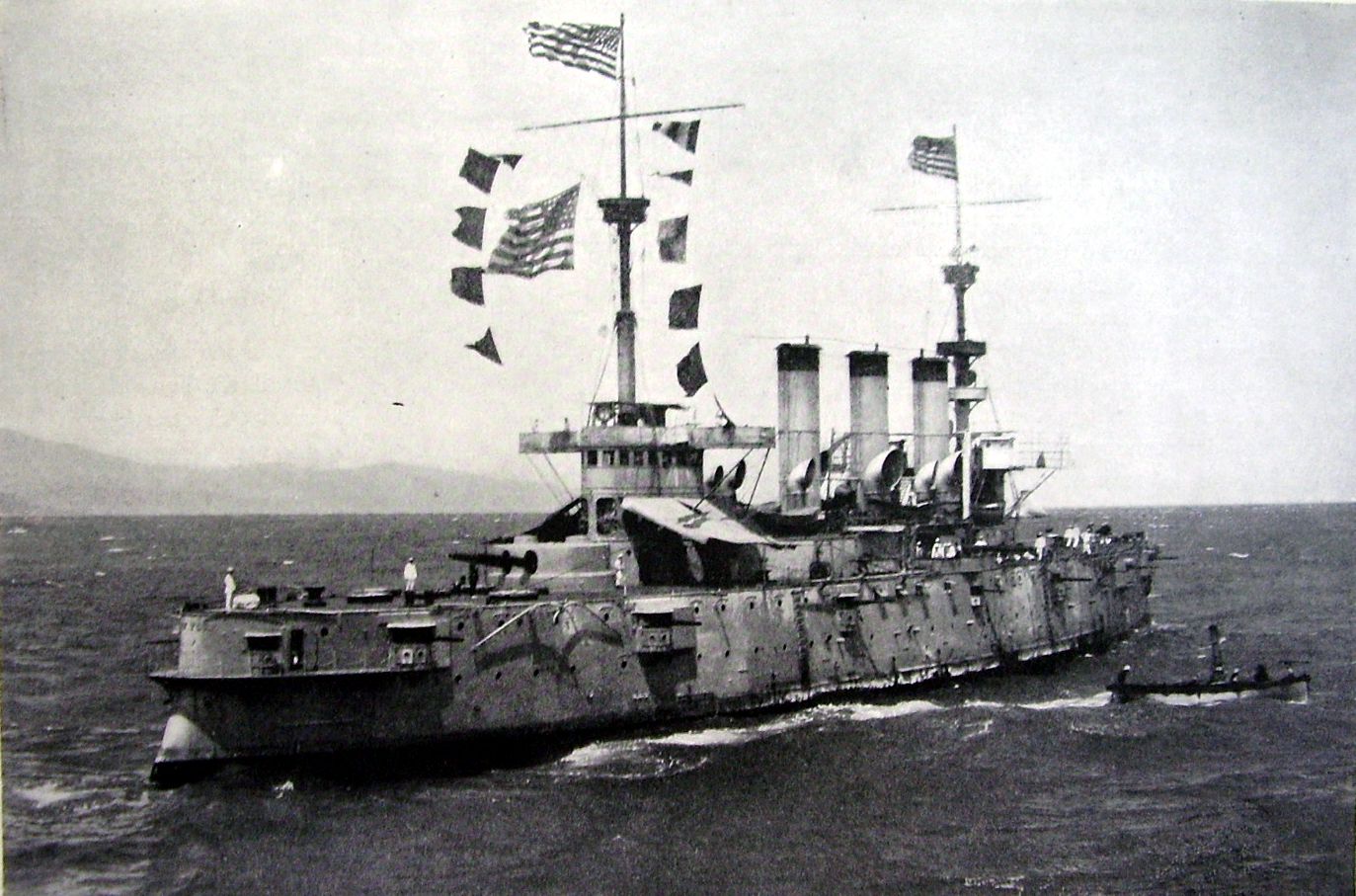 Starboard bow view most likely off New York City during the victory fleet review, August 1898. Caption on photo: "Photoprint copyrighted by Charles E. Bolles. No. 997." REPOSITORY: Library of Congress Prints and Photographs Division Washington,