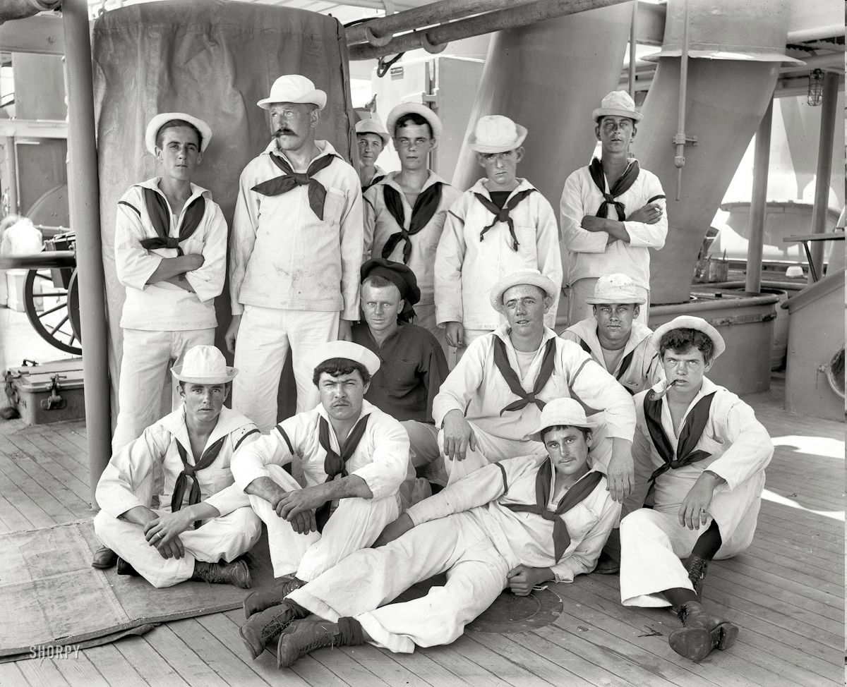 Photo of a group of sailors aboard New York in 1896. Library of Congress |