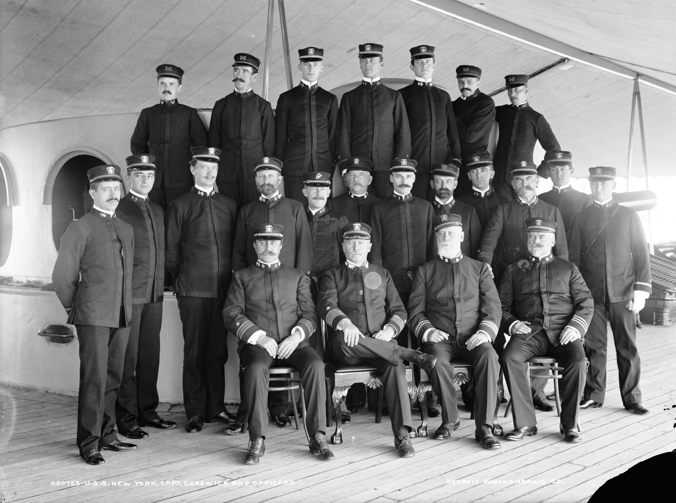 586k | Captain Chadwick and officers of the cruiser New York (ACR-2) circa 1890's. Image #LC-D4-20755) courtesy of the Library of Congress |