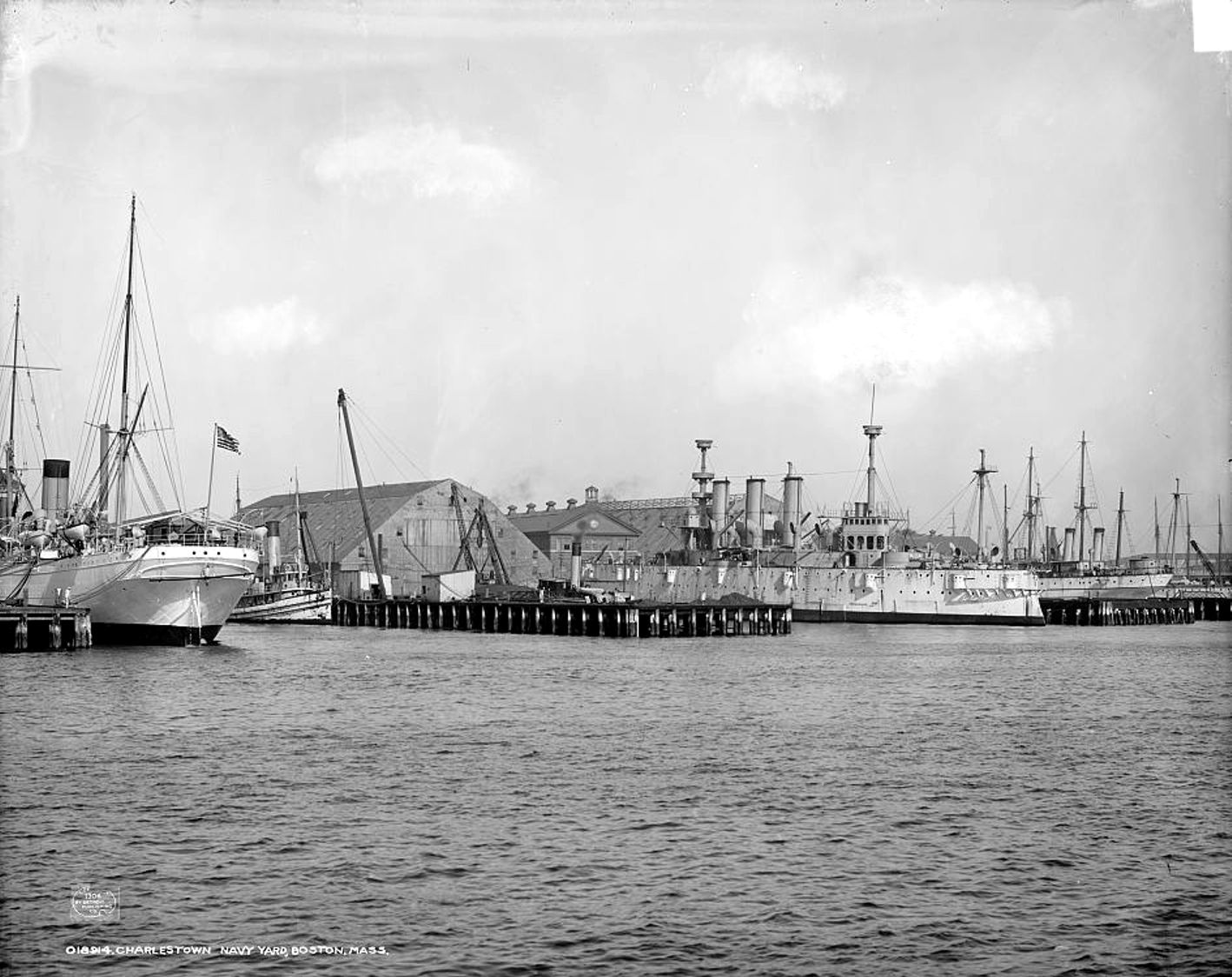 227k | New York, center of photo. Decommissioned and undergoing modernization, Charlestown Navy Yard, Boston, MA, 1906. Detroit Publishing Co. no. 018914 |