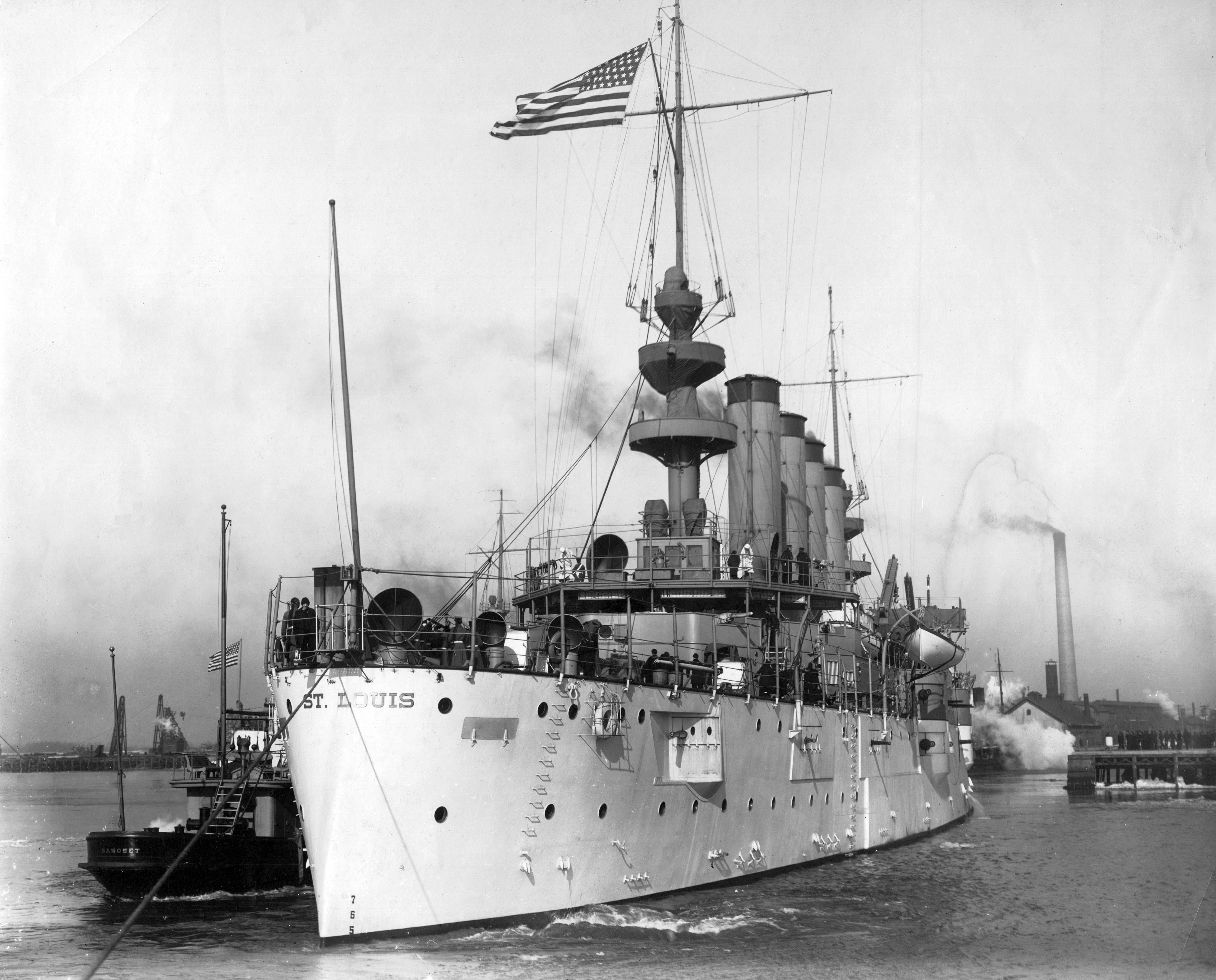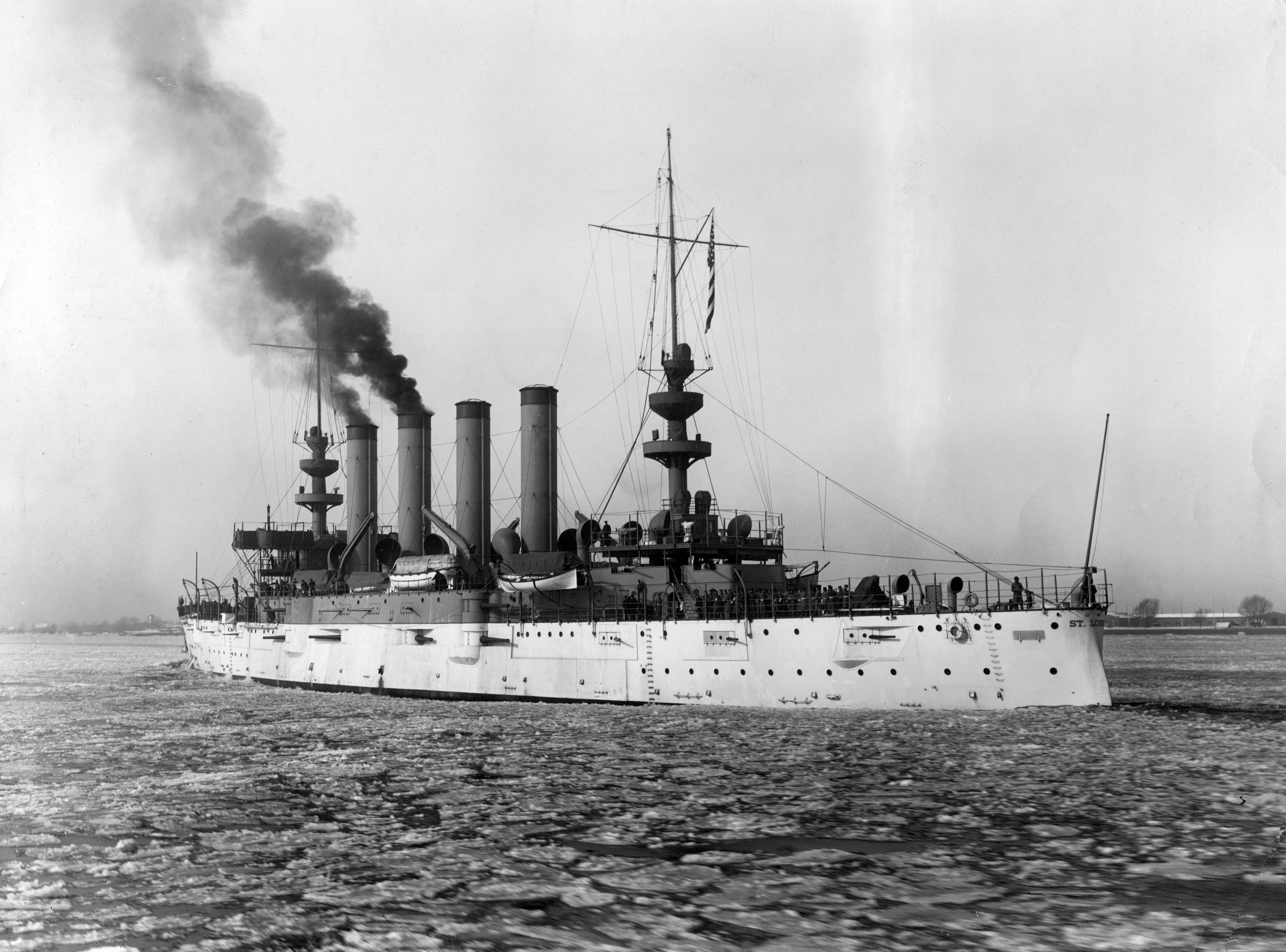 3.38k | Broadside view of the USS Saint Louis (Cruiser No. 20). | National Archives Identifier: 55172756 Local Identifier: 111-SC-5923 Photo courtesy of National Archives | |