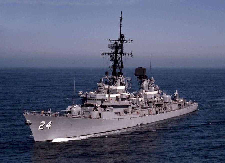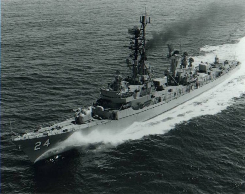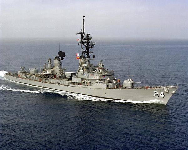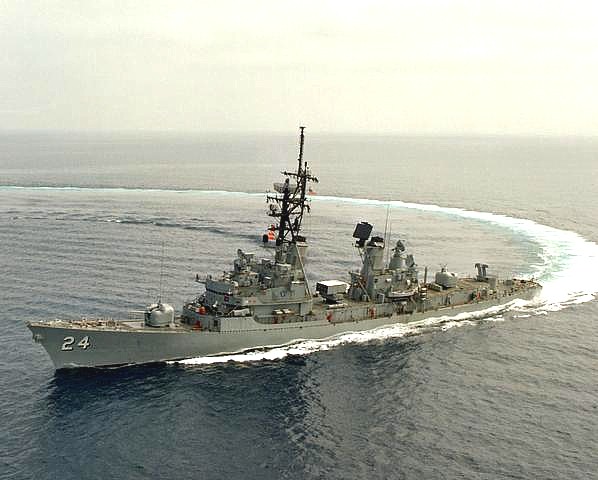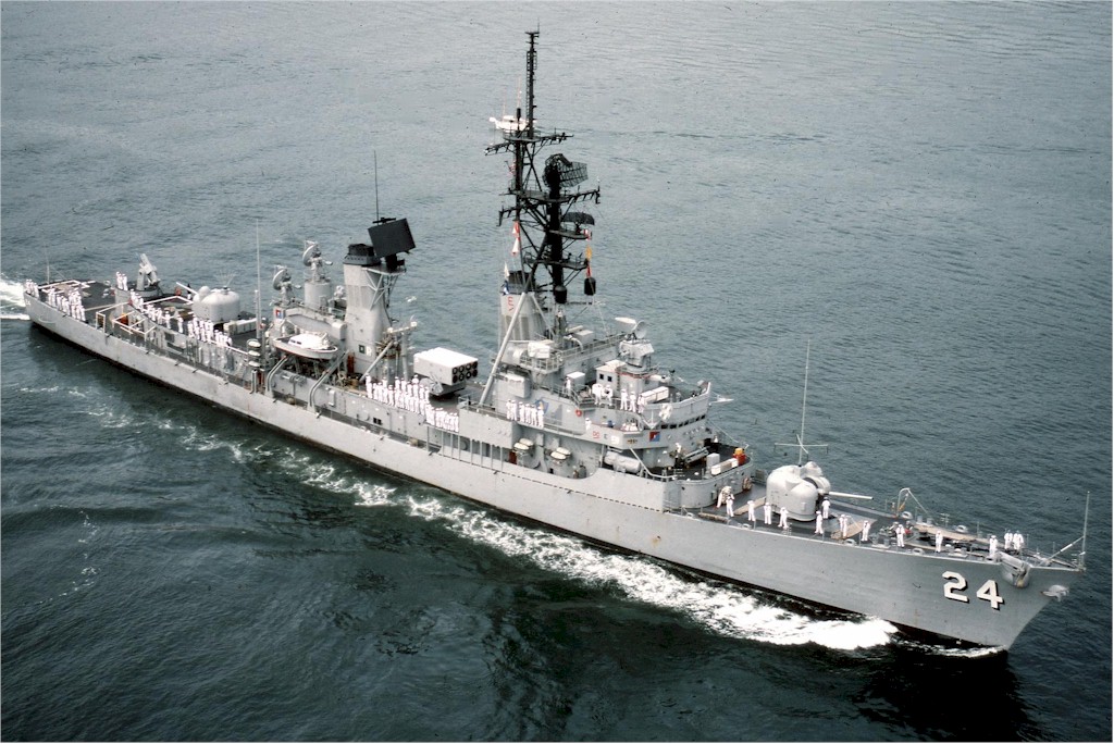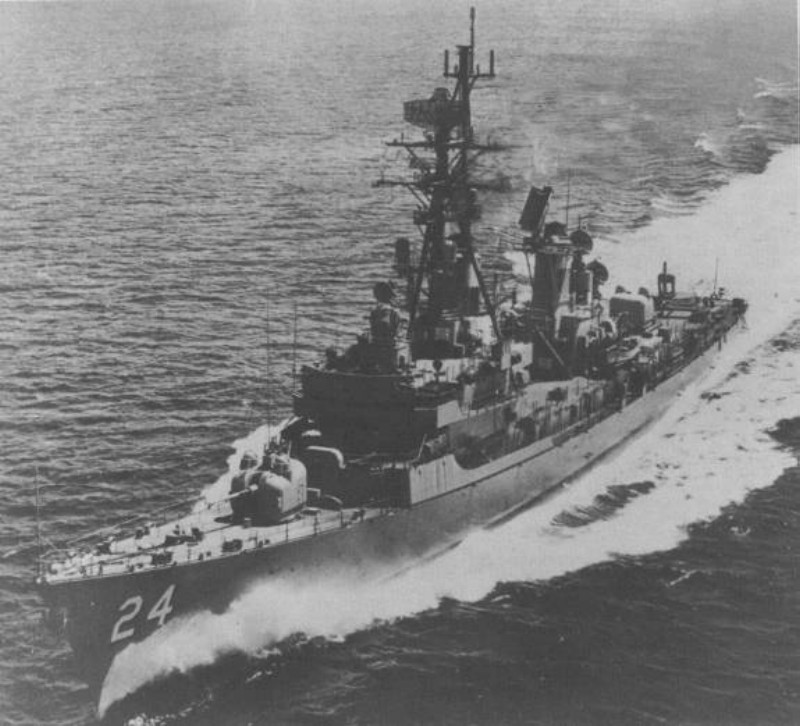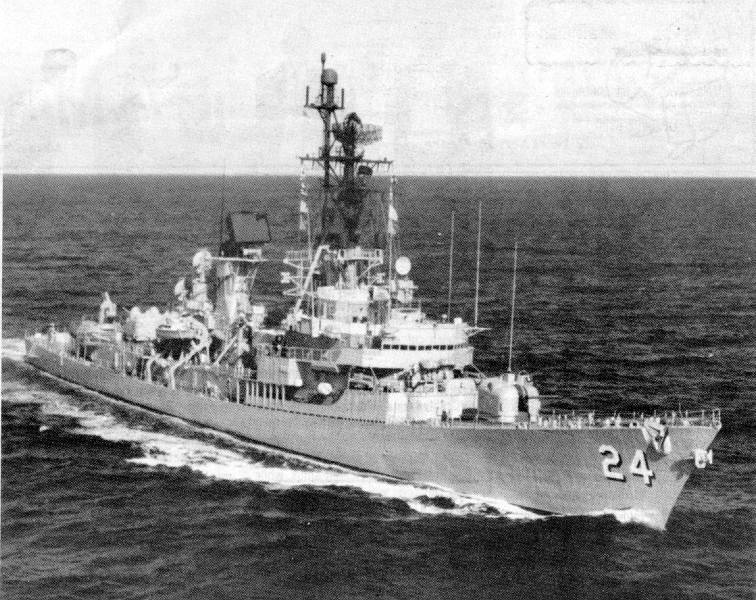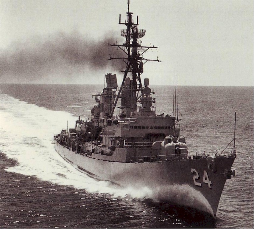 | 182k | As above. The image well portrays the powerful sheerline and modified bow associated with the later ships' bow-mounted SQS-23 sonars. Official US Navy photo taken from "An Illustrated History of Destroyers of the World" by Bernard Ireland. | Robert Hurst |