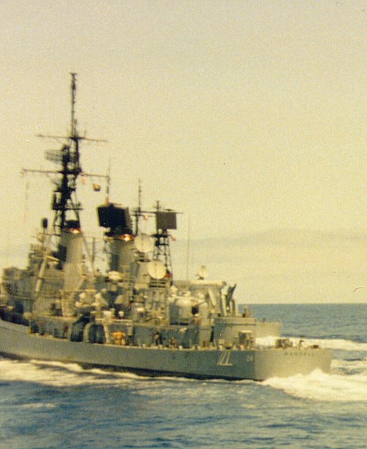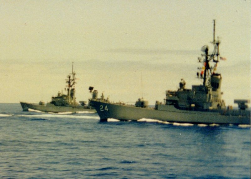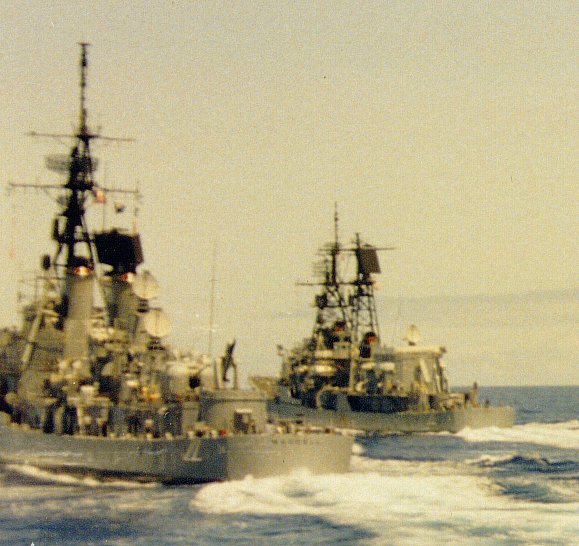 | 79k | Ships of Desron 7, USS Waddell (DDG-24), during the "Tiger Cruise" returning from the 1982-83 WestPac, as viewed from the Decatur (DDG-31.) | Lee Noland |