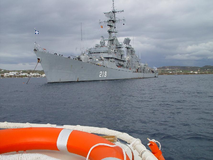 | 90k | DDG-24 as Greek NEARCHOS D-219 in Piraeus harbor in Feb.2000. | Marc Piché |