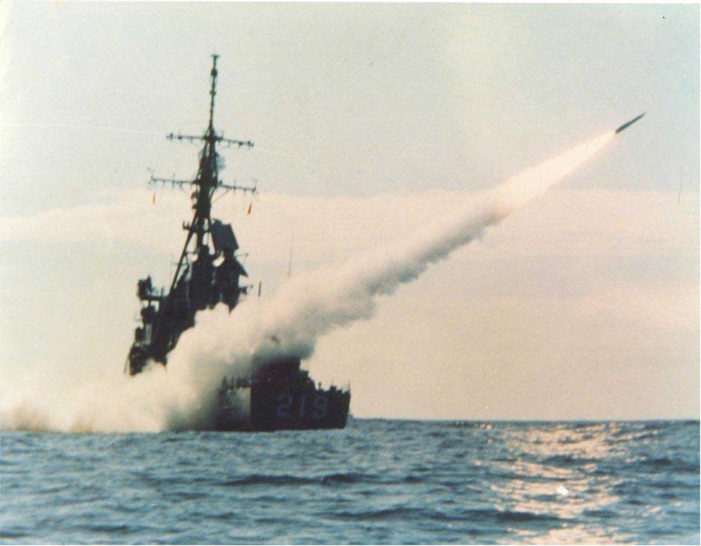 | 67k | May 8, 1986, the guided missile destroyer USS Waddell (DDG-24) underway off the coast of Southern California. | Fred Weiss |