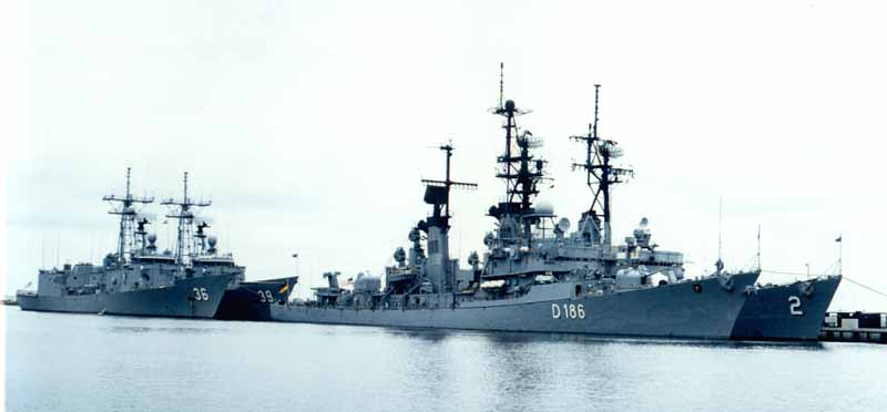 59k | The Rommel (D-187), Lutjens (D-185) and Mölders (D-186) shortly before the Rommel was decommissioned. | Jörg Bihlmayr |