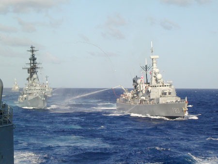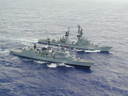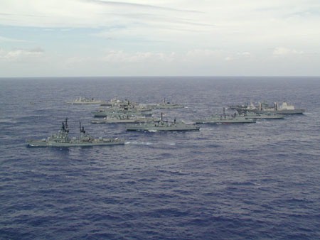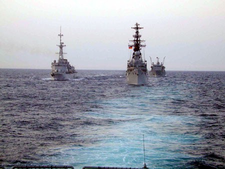 | 35k | The recent (2001) DESEX deployment TaskGroup consisting of the French D 646 Latouche Tréville, the Belgian F 910 Wielingen, the Dutch F 829 Willem Van Der Zaan, F 813 Witte De With, F 806 De Ruyter, A 836 Amsterdam (with 2 British SeaKing's embarqued) and the German D 186 Mölders, F 217 Bayern, F 208 Niedersachsen. F 211 Köln, A 1442 Spessart, A 1435 Westerwald and A 1413 Freiburg. Mölders is the ship left in the foreground. | Jörg Bihlmayr |