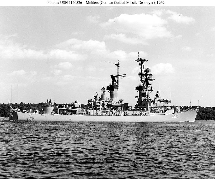 | 184k | FGS Mölders underway Off Bath, Maine on sea trials in 1969. While under construction, this ship was assigned U.S. Navy hull number DDG-29. Official U.S. Navy Photograph. Photo #: USN 1140526. | Robert Hurst |