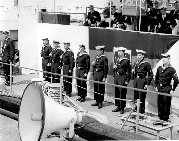 133k | The transfer/commissioning ceremony for FGNS Rommel took place on 2 May 1970 at Pier 1 East of Boston Naval Shipyard U.S. Navy photograph, Boston National Historical Park Collection, NPS Cat. No. BOSTS-14122. | Stephen P. Carlson, Boston NHP, Charlestown Navy Yard |