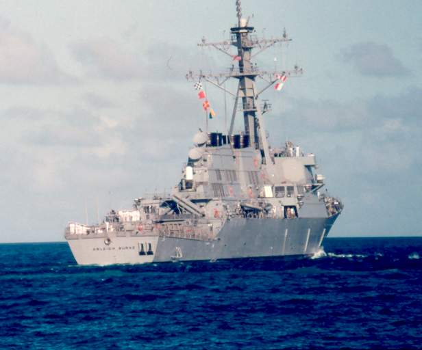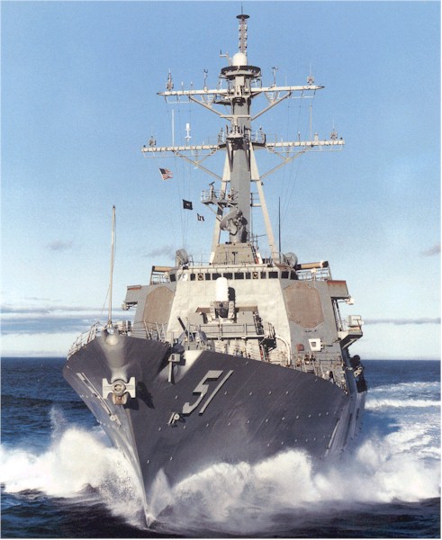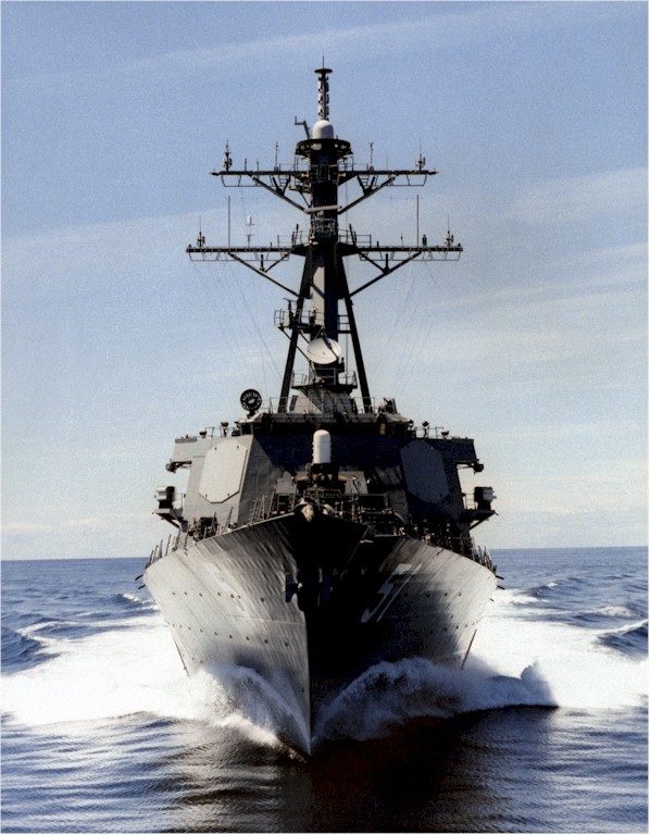 | 43k | USS Arleigh Burke steams through the Mediterranean Sea, 13 March 2003. U.S. Navy Photo by Journalist 2nd Class Patrick Reilly. | Steven A. Cardali | |